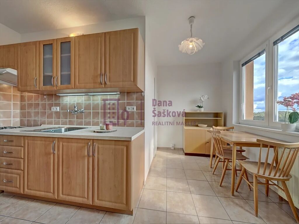 Byt orientovaný na jižní stranu je vybavený nábytkem, kuchyňskou linkou, digestoří, plynovým sporákem, pračkou, chladničkou a pultovým mrazákem v chodbě.