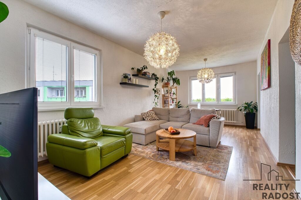 Byt je orientován na 2 světové strany a to severovýchod a jihozápad. Velkou výhodou je, že v obývacím pokoji, který je o velikosti 7 x 3,4 m jsou 2 okna na 2 světové strany s výhledem do zeleně, díky tomu je obývací pokoj velmi prosvětlený.