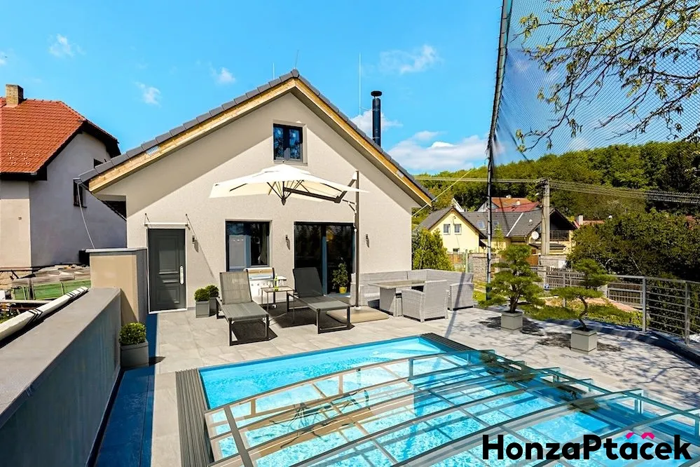 Chcete bydlet v klidném prostředí kousek od Prahy, obklopeni přírodou, ale přitom v moderním domě? Na okraji Voděradských bučin nabízím k prodeji novostavbu rodinného domu 3+kk s velkou terasou, bazénem a sklepem o rozloze více než 60 m². Nemovitost stojí na pozemku o celkové výměře 1 055 m² (321 m² zastavěná plocha a 734 m² zahrada).