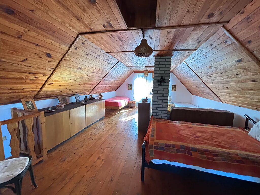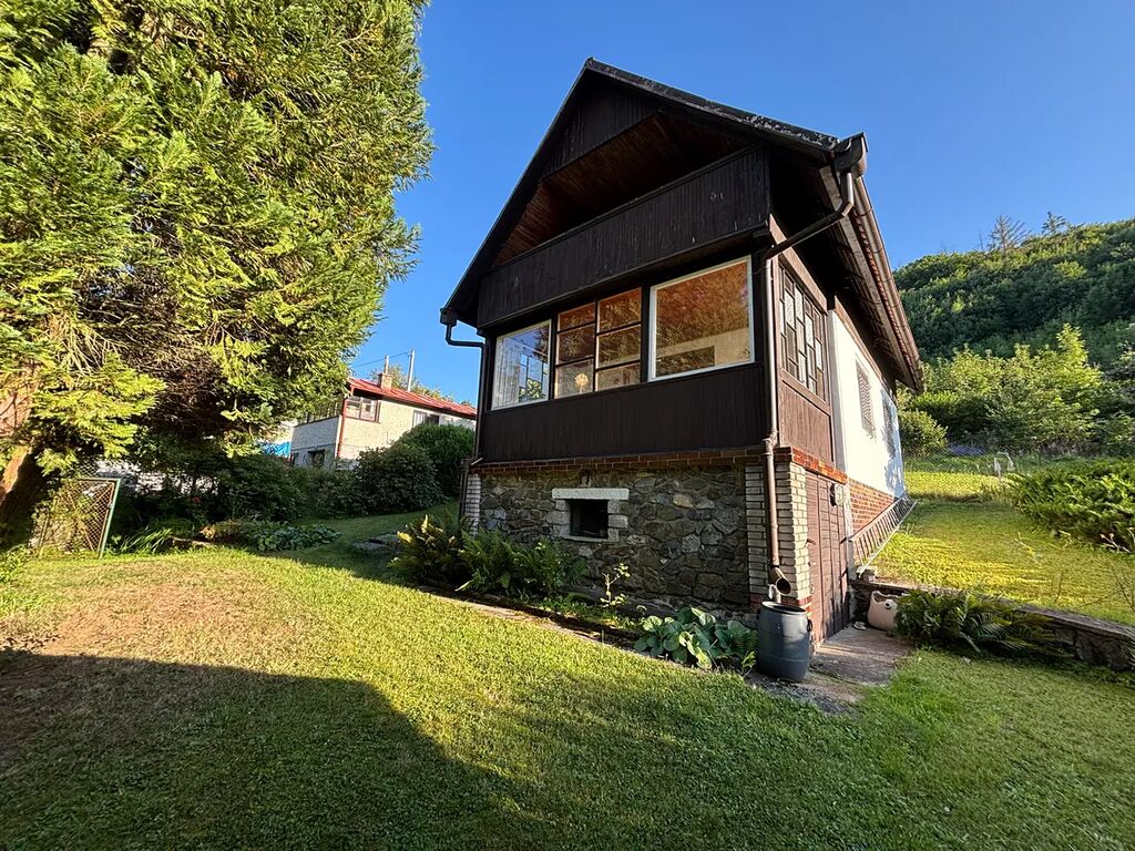 Zděná chata z roku 1964, v roce 1981 chata rozšířena o zděnou část zázemí koupelny a přístavby 2.NP s dřevěnou verandou. Nemovitost je ve velmi dobrém technickém stavu, napojena na obecní studnu s pitnou vodou na půlroční bázi – jaro až podzim, na zimu voda uzavřena. Odpad sveden do jímky, vytápění – kamna na tuhá paliva, ohřev vody – el.bojler. Chata disponuje v 1.NP zádveřím, koupelnou s vanou, chodbou, WC, samostatnou kuchyní, prostorným obývacím pokojem s téměř novými kamny, ložnicí, prosklenou verandou, komorou pod schody. Ve 2.NP je velký otevřený prostor – pokoj s verandou. Dostatek úložného prostoru nabízí pochozí půda, sklep a dřevník na zahradě. Podlahové krytiny – dřevo, dlažba. Na zahradě jsou vysázeny stromy, keře, celý pozemek je oplocen.