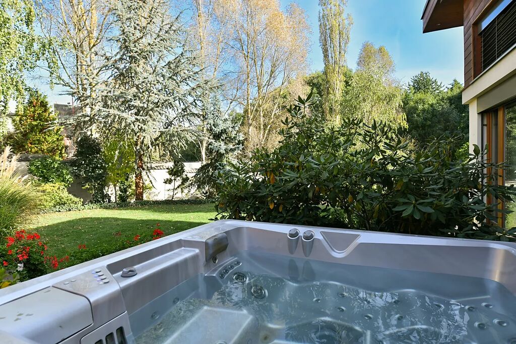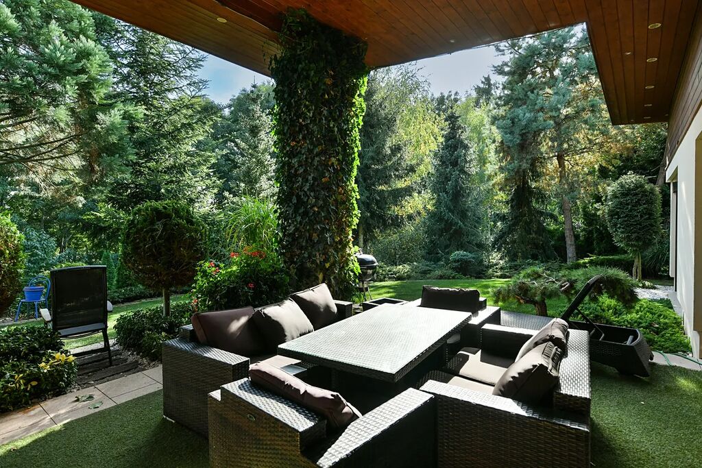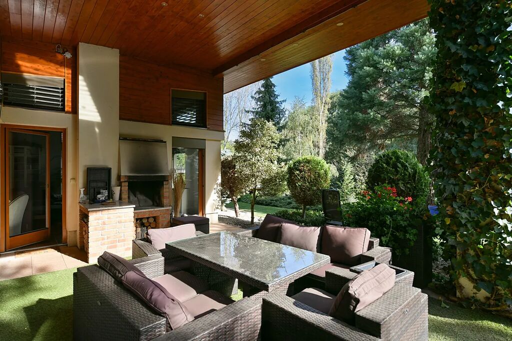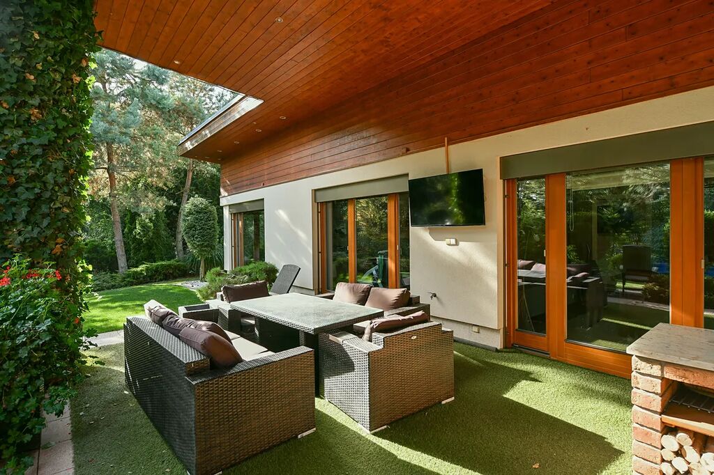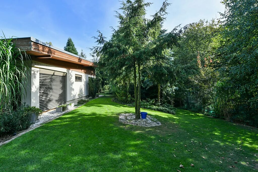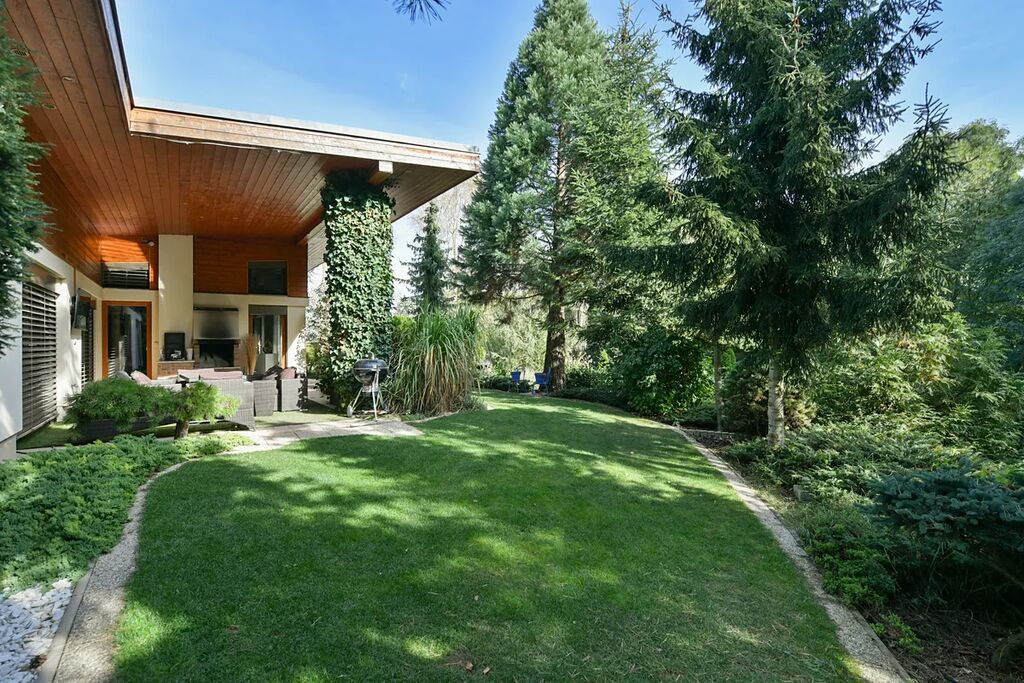 Chcete být venku? Vyjděte ven do své 1 770 m2 rozlehlé oázy relaxace. Představte si sami sebe, jak lenošíte v šumivé vířivce či ve stínu stromů nebo se vyhříváte na slunci. Tento dům skutečně nabízí to nejlepší na bydlení v klidné a tiché slepé uličce na pokraji lesa.