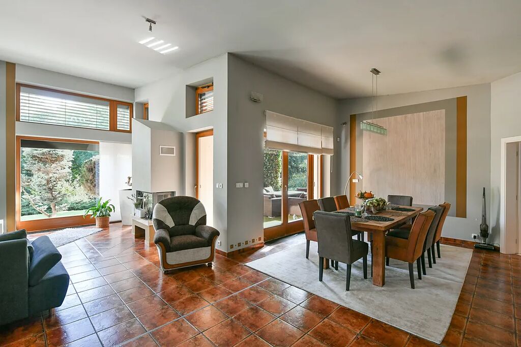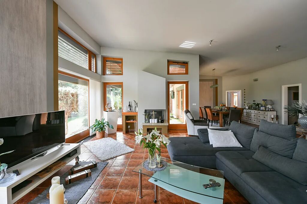 Když vejdete dovnitř, dům vás přivítá bohatým přirozeným světlem a otevřeným půdorysem. Obývací pokoj přechází do kuchyně spojené s jídelnou, což umožňuje příjemné společné posezení, snadnou konverzaci a zábavu při přípravě vašich oblíbených jídel. Prostorné pokoje s vysokými stropy a velká francouzská okna vás spojí s přírodní krásou zahrady.