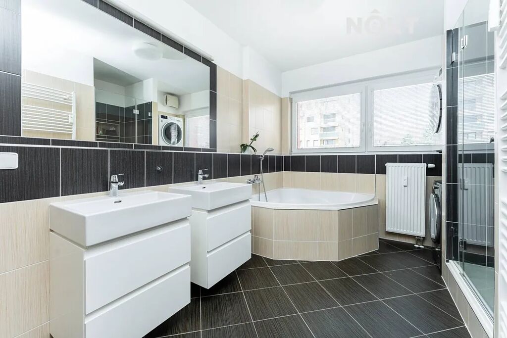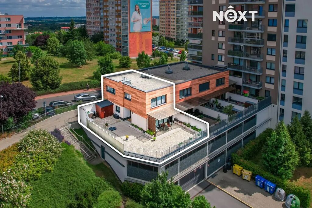 Naše společnost Vám exkluzivně nabízí k pronájmu mezonetový byt s dispozicí 4+kk (118 m2), terasou (134 m2) a prostorným garážovým stání v 1. nadzemním podlaží bytového domu v Horních Měcholupech, na adrese Nad přehradou. Dispozice bytu: vstupní chodba s prostornou komorou, samostatné wc, obývací pokoj propojený s kompletně vybavenou kuchyni a dvěma vstupy na terasu, po schodech do 1.np, kde jsou tři samostatné pokoje, koupelna s vanou a samostatné wc. Byt se nachází v klidném prostředí, kde máte vše, co potřebujete, na dosah ruky: MŠ, ZŠ obchody, lékaře, restaurace i sportovní vyžití. Pro milovníky přírody je tu blízko Hostivařská přehrada s lesoparkem, která nabízí celoroční sportovní vyžití, jak pro cyklistiku tak turistiku. Lokalita nabízí výbornou dopravní dostupnost - autobusová zastávka je kousek od domu, rychlé spojení na metro i snadný výjezd autem na hlavní tahy. Nájemné 40.000,-Kč/měs + 8.000,-Kč/měs záloha na energie a služby spojené s užíváním bytu + elektřina se přepíše na nájemce. Kauce 1 nájem, provize RK 1 nájem. Byt bude volný od 1.10.2025. Prohlídky jsou po dohodě možné i o víkendu. Pro komunikaci uvádějte evidenční číslo zakázky N112934.