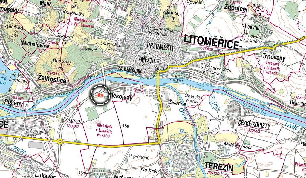 Nabízím k prodeji zemědělské pozemky ve výlučném vlastnictví o celkové výměře 4 425 m² v katastrálním území Mlékojedy u Litoměřic, okres Litoměřice. Pozemky jsou zapsány na listu vlastnictví č. 6 a jedná se o následující parcely: