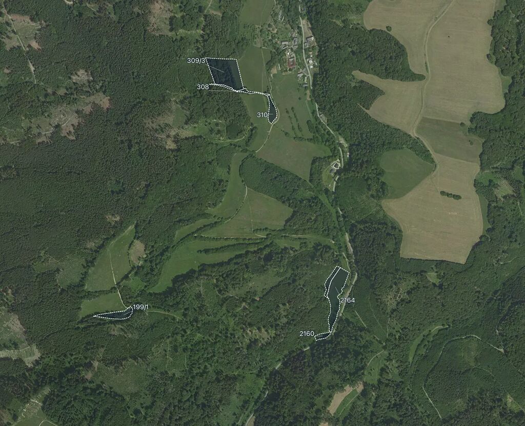 Pozemky jsou zapsány na LV 194 v k.ú. Bohdalov u Městečka Trnávky pod parcelními čísly 309/3, 310, 308 a 199/1 a na LV 271 v k.ú. Pěčíkov pod parcelními čísly 2160, 2164 a 2166. Celková výměra všech pozemků činí 26 370 m². Převážnou část tvoří trvalý travní porost. Parcely 2160 a 308 jsou vedeny jako ostatní plocha o celkové rozloze 1 913 m². Parcela 2166 je lesní pozemek o výměře 1 576 m².