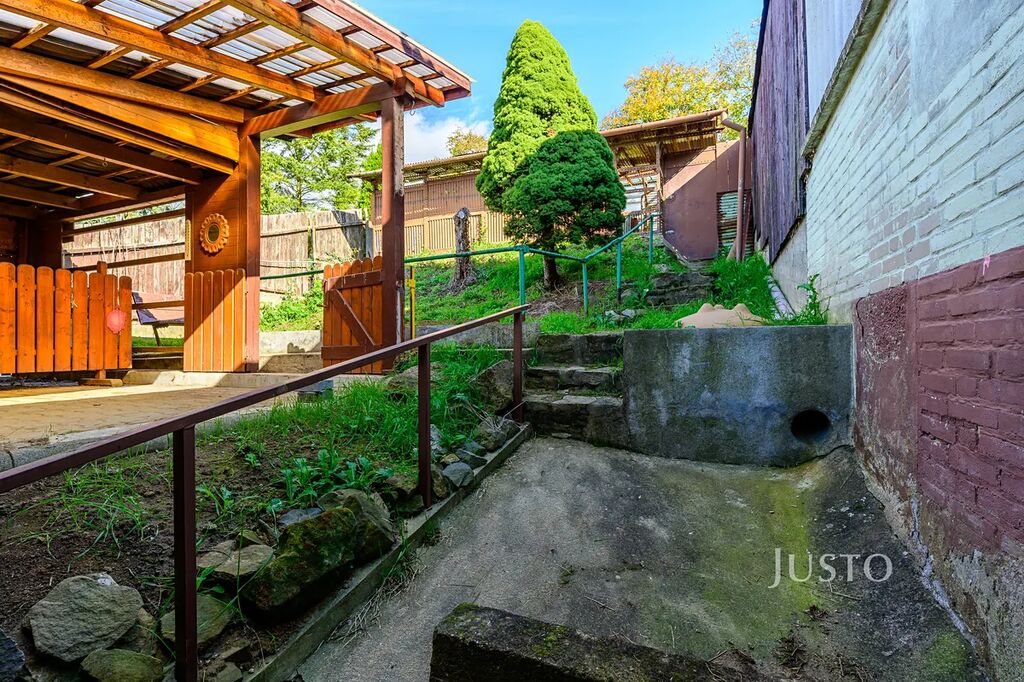 • Zahrada a příslušenství: K domu patří zahrada o výměře 352 m², předzahrádka, dvorek, garáž, dva sklepy, skladový prostor nad garáží, skleník a kovová konstrukce skladu.