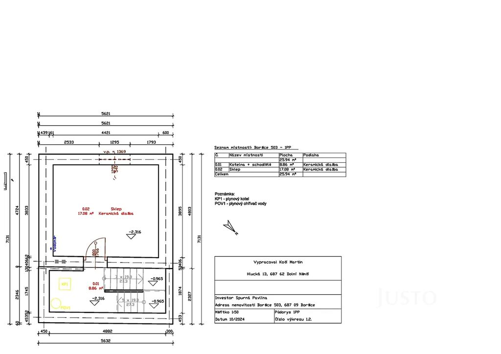 • Užitná plocha: Celková užitná plocha domu je 241,51 m², z toho přízemí 106,69 m², patro 91,15 m² a sklepy 43,67 m².