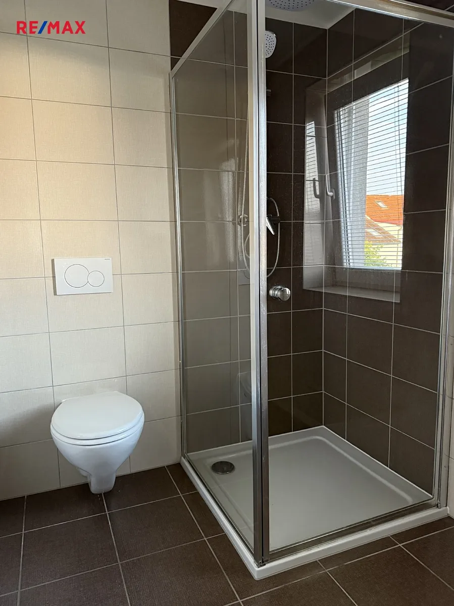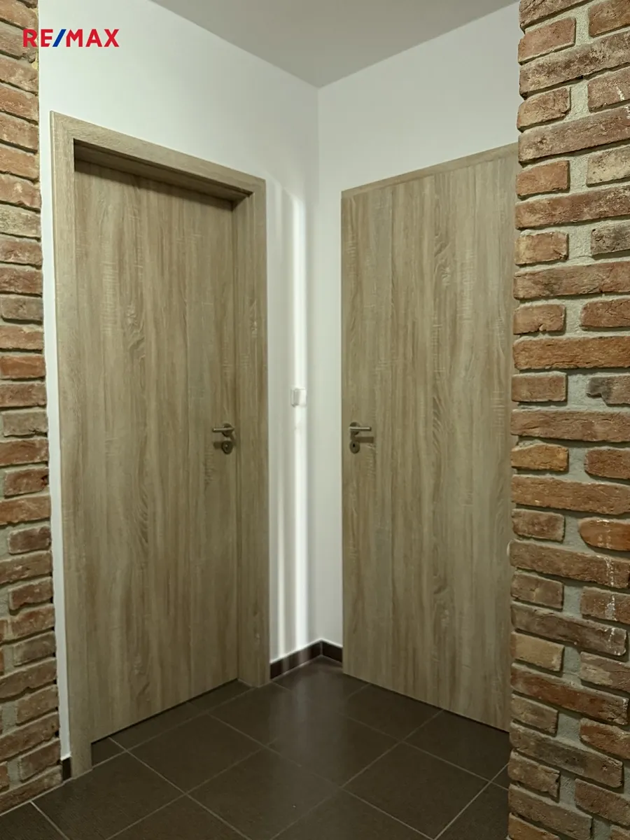 Byt je částečně vybaven – kuchyňská linka včetně spotřebičů a koupelna.