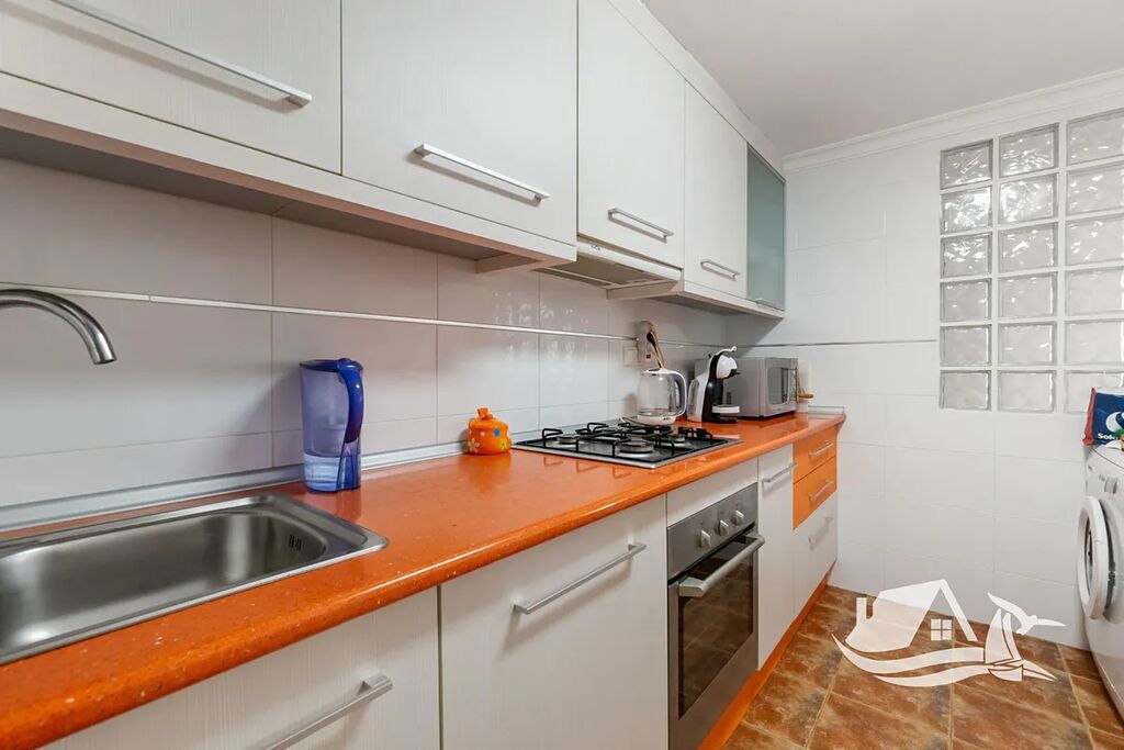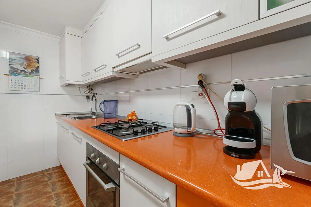 Dům nabízí společné solárium s výhledem na moře a i když zde není výtah, přístup do bytu je jednoduchý a každodenní rutina zůstává pohodlná.