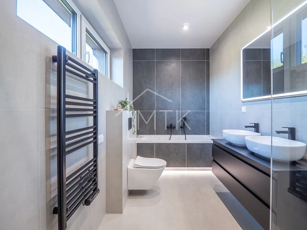 • nadstandardní koupelna se dvěma umyvadly a samostatné WC s umyvadlem,