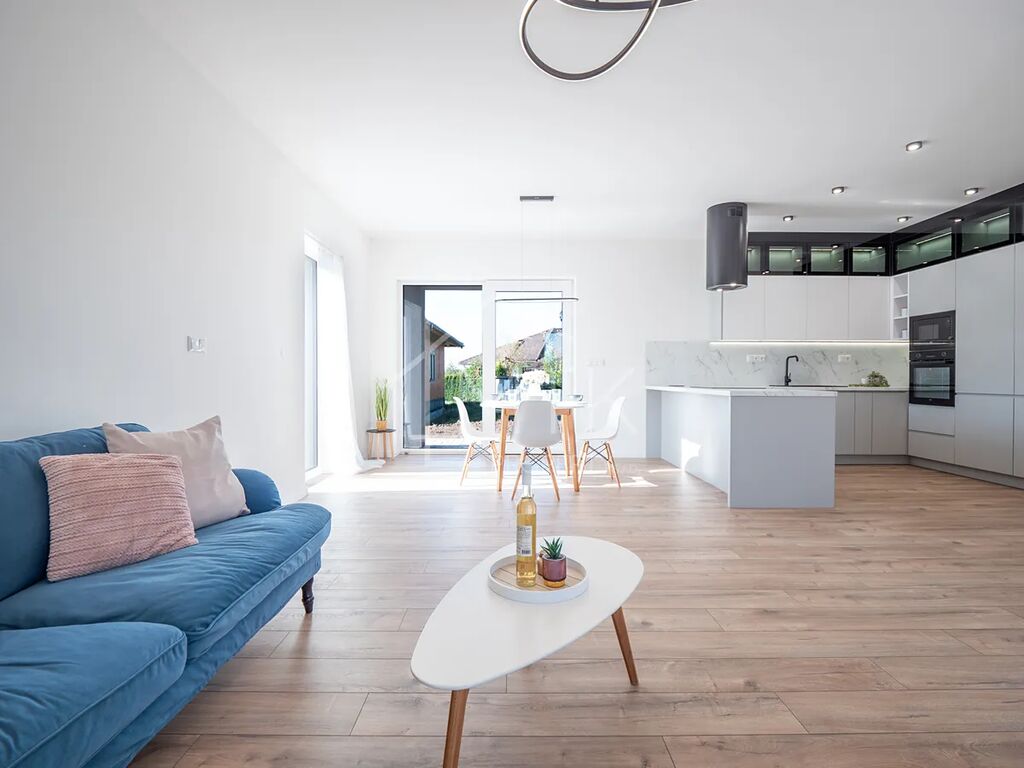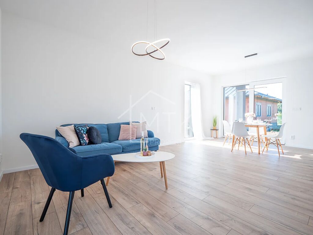 Dům stojí na pozemku o velikosti 748 m² a nabízí dispozici 4+kk o užitné ploše 106 m², s prostornou terasou 14,58 m².