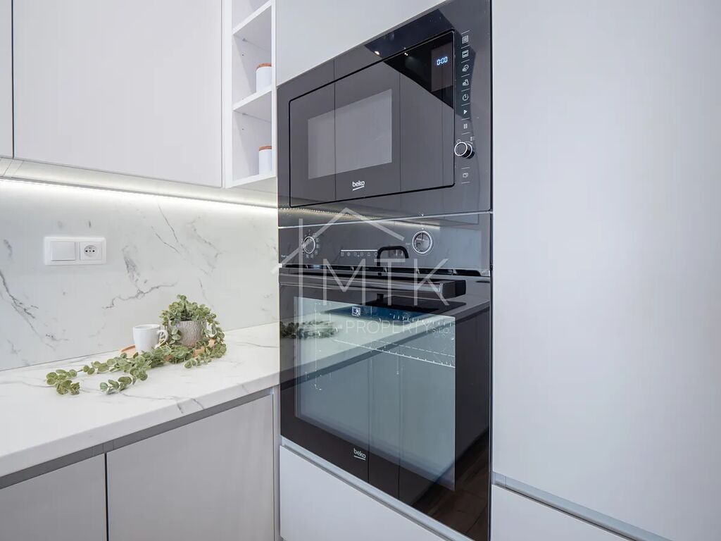 • kuchyňská linka v nadstandardním provedení, ozvláštněná vrchními prosklenými skříňkami s LED osvětlením,