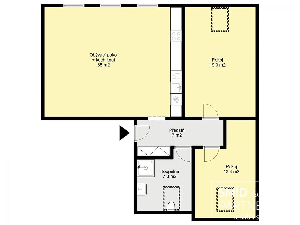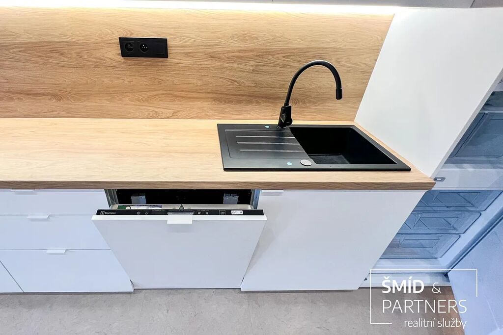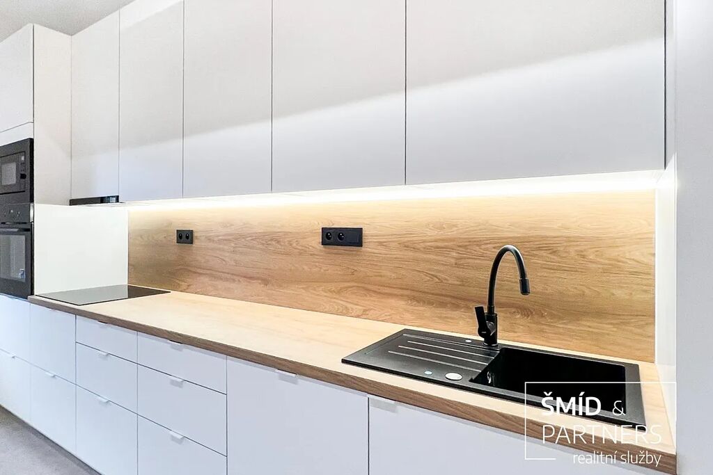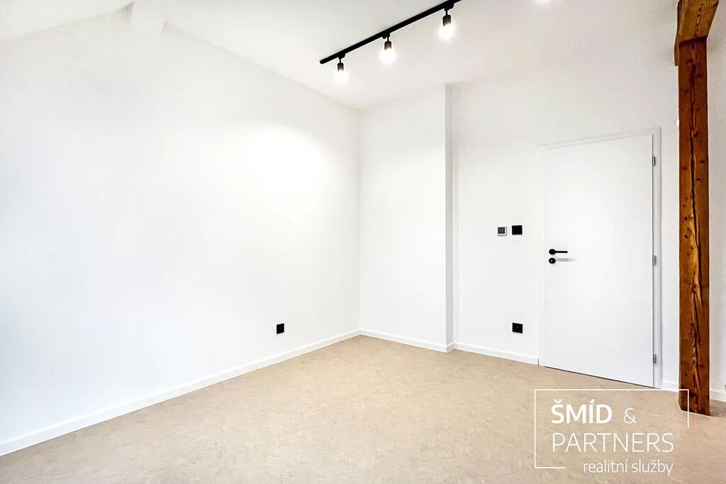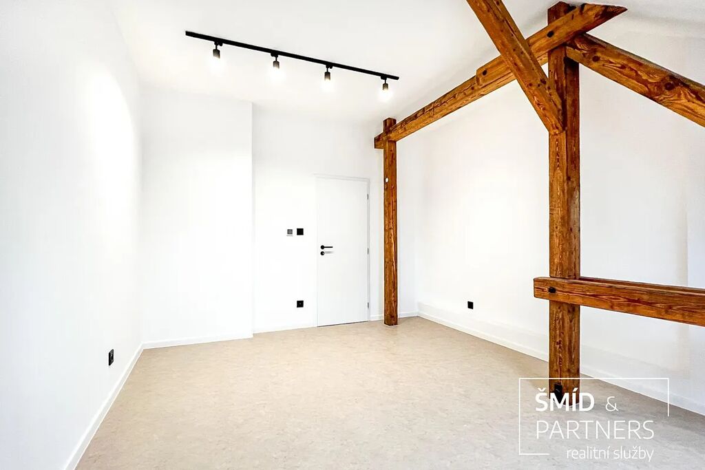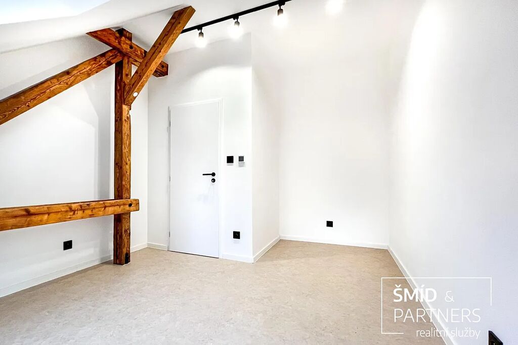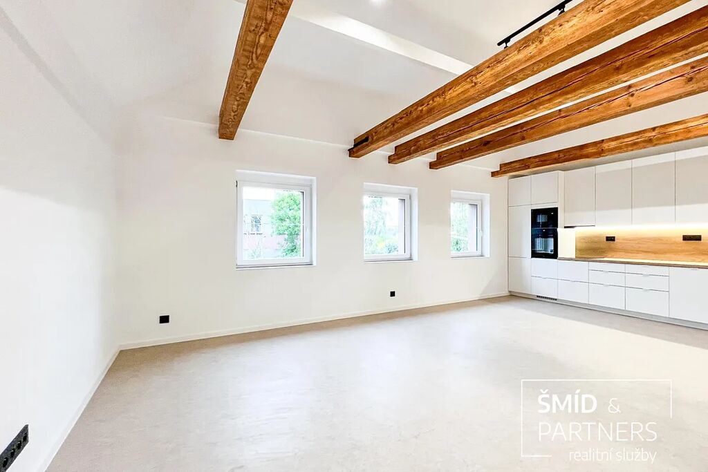 Nabízíme k prodeji krásný byt o rozloze 85 m2 v dispozici 3+kk. Byt právě prošel mimořádně zdařilou rekonstrukcí a je ihned připraven pro nové vlastníky. Jedná se o elegantní podkrovní byt, jehož hlavní a největší místnost, obývací pokoj s kuchyňským koutem, je situován ve vikýři čtyřpodlažního bytového domu. Dvě ložnice a koupelna jsou s krovní šikminou se střešními okny Velux stále výborně prostorově i výškově využitelné. Částečně přiznaná krovní konstrukce propůjčuje místnostem příjemný industriální vzhled, aniž by zásadně omezovala jejich využití. Obývací části dominuje velká, plně vybavená kuchyňská linka s vestavnými spotřebiči (myčka, kombinovaná chladnička, horkovzdušná trouba, varná deska, mikrovlnná trouba, digestoř) a pohledová trámová konstrukce stropů. V chodbě jsou vestavěné úložné skříně. Elektrický bojler o objemu 120 l, který slouží pro ohřev TUV, je ukrytý v podkrovním prostoru koupelny, tak aby vizuálně nerušil decentní a velmi příjemné provedení koupelny. Topení v celém bytě je řešeno el. topnými rohožemi v podlaze s perfektní regulací teplot v jednotlivých místnostech. Odolné vinylové podlahy jsou v celém prostoru barevně sjednocené a umocňují tak celkový luxusní dojem. Byt je v osobním vlastnictví a předpis měsíčních plateb činí rozumných 1.575,- Kč, z čehož fond oprav představuje částku 785,- Kč. Bytový dům je dobře udržovaný, se zateplenou fasádou a po kompletní výměně dřevěných oken za plastová.