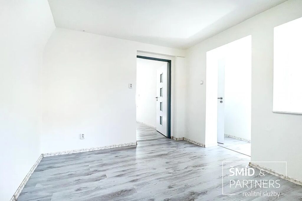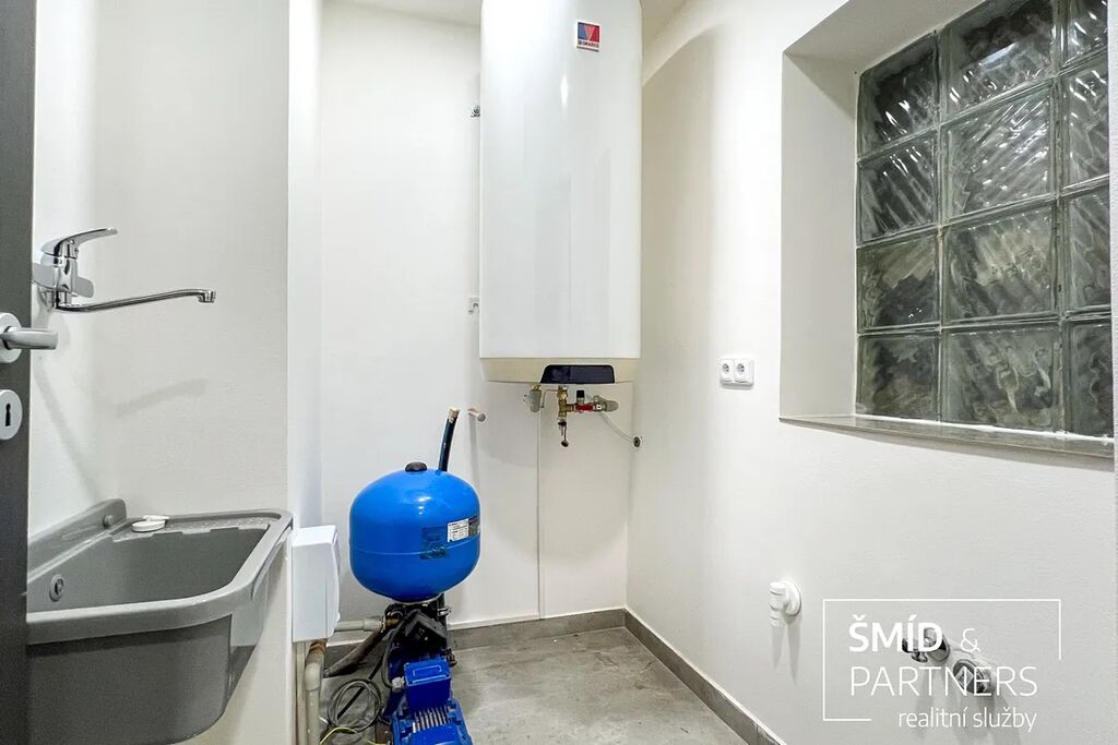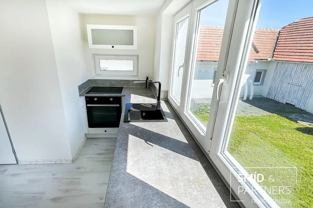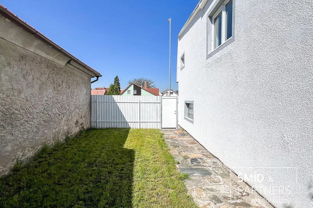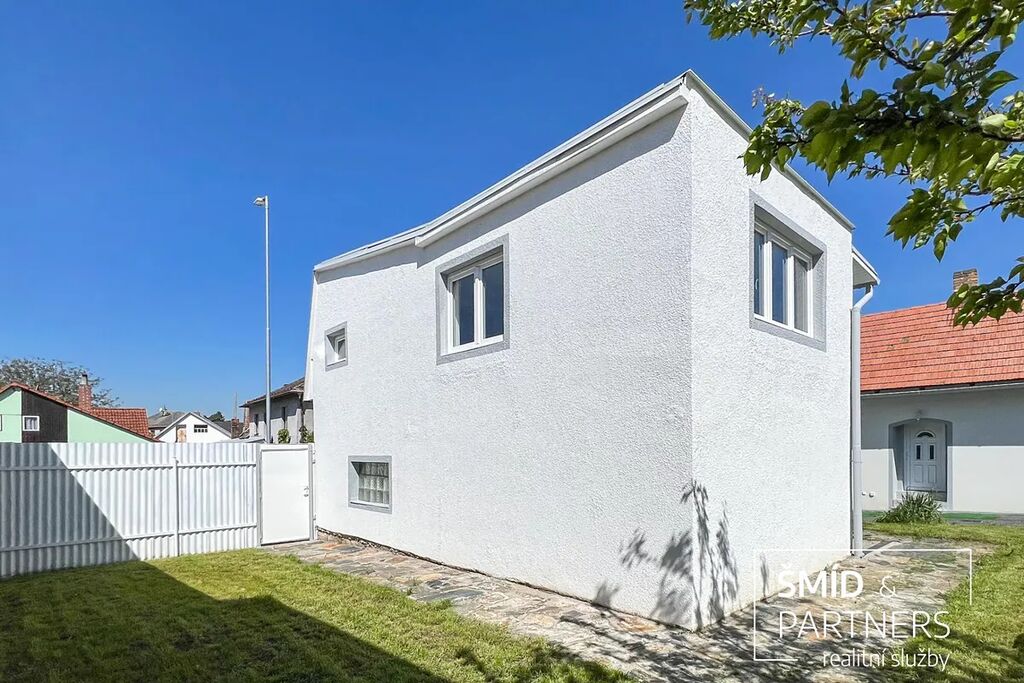 Druhou stavbou na pozemku je zděný samostatně stojící dům se zastavěnou plochou 62m2 s bytovou jednotkou 2+1 s koupelnou s WC o obytné ploše 44m2, garáží a skladem. Také tento dům prošel rekonstrukcí vč. rozvodů elektřiny, vody, odpadů. Instalována je nová kuchyňská linka s elektrickou troubou, varnou deskou, koupelna s WC obložena keramickým obkladem, vybavena novou sanitou, na podlaze položen vysoce zátěžový vinyl, nová plastová okna, vstupní i interiérové dveře. Vytápění je zajištěno pomocí elektrických topných panelů, ohřev vody zajišťuje bojler.