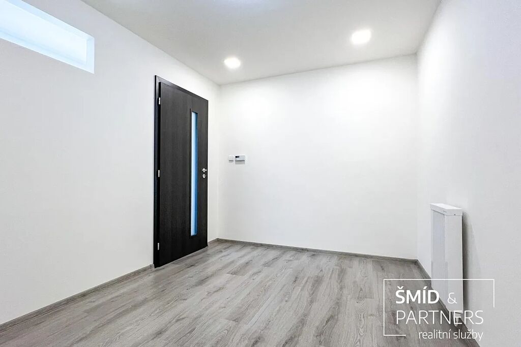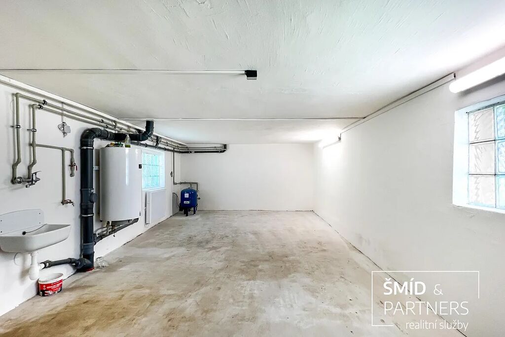 V přízemí se nalézá garáž s užitnou plochou 30m2 s vjezdovými vraty z ulice, dále sklad 14,4m2.