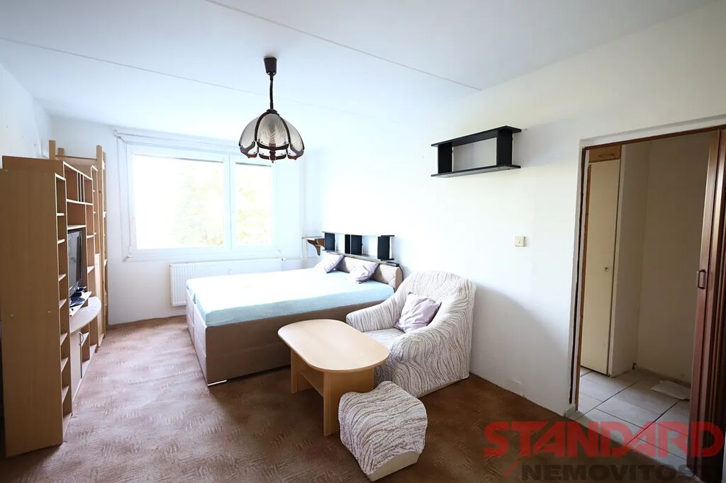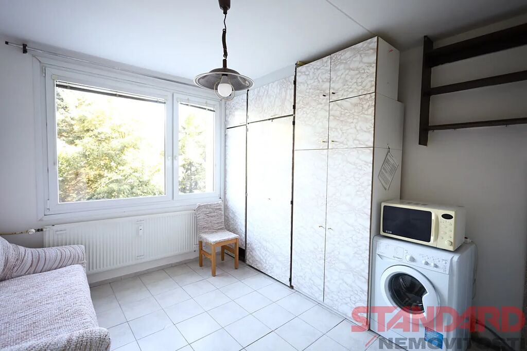 Do bytu vcházíme přes malou předsíň se šatní skříní, ze které ve vstup do koupelny s toaletu, umyvadlem a vanou a dále do kuchyně se starší kuchyňskou linkou, lednicí s mrazákem, plynovým sporákem s troubou a digestoří a mikrovlnou troubou. Je zde také pračka, úložné skříně, gauč a křeslo. Z kuchyně je vstup do druhého pokoje, který slouží jakou obývací pokoj/ložnice, která je zařízena stěnou s televizí, manželskou postelí, křeslem a dalším nábytkem - viz fotodokumentace.