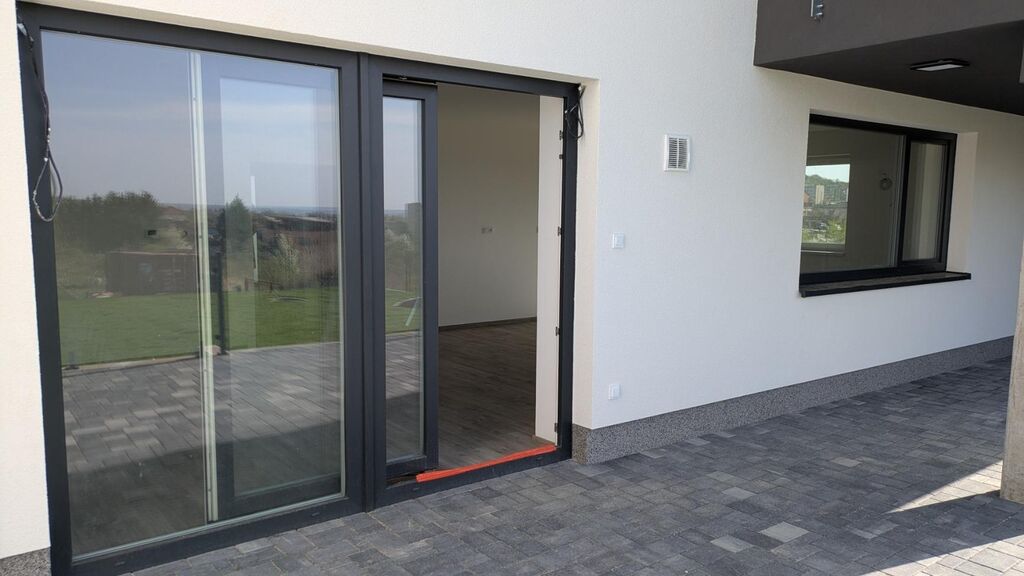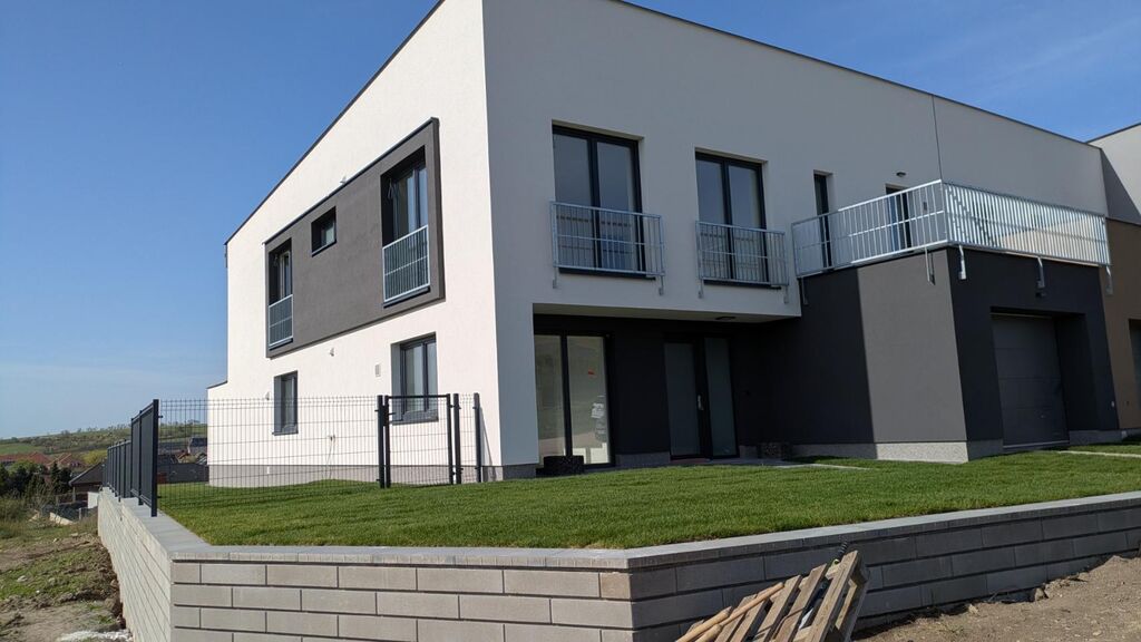 Z obývacího pokoje je výstup na venkovní terasu o velikosti 20 m2 a dále do zahrady domu, kde byly položeny travní koberce po celé ploše zahrady. Zahrada je také připravena k okamžitému využívání. Dům je postavený z kvalitních a moderních materiálů včetně velkoformátových obkladů všech 3 koupelen. Příjezdová komunikace je veřejná komunikace ve vlastnictví města, v letošním roce proběhne její kompletní výstavba včetně finálních povrchů.