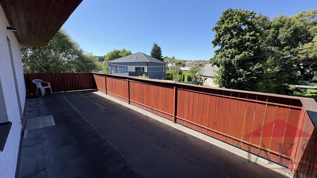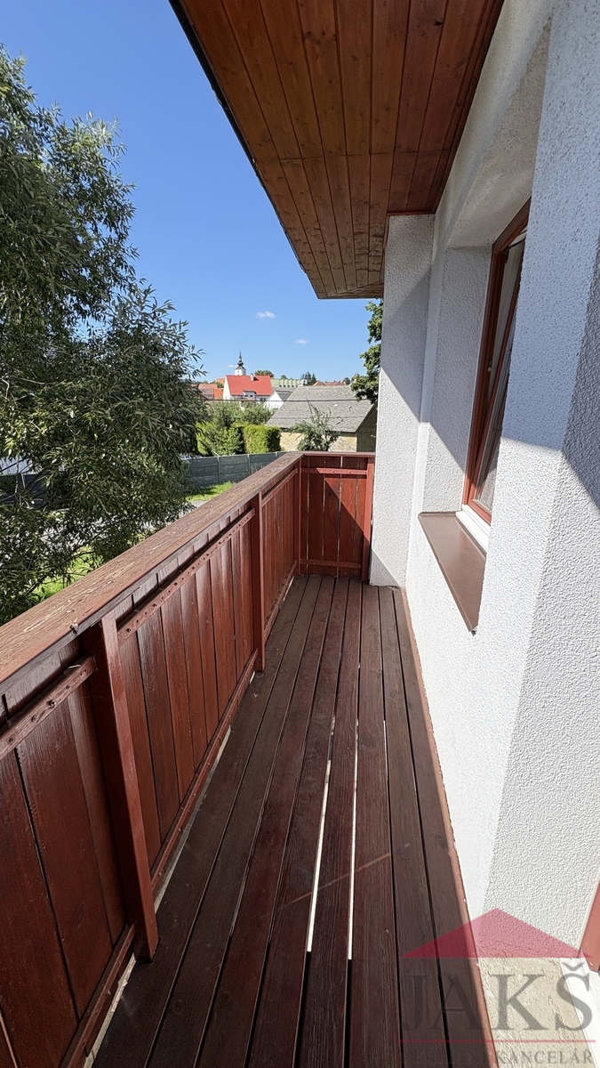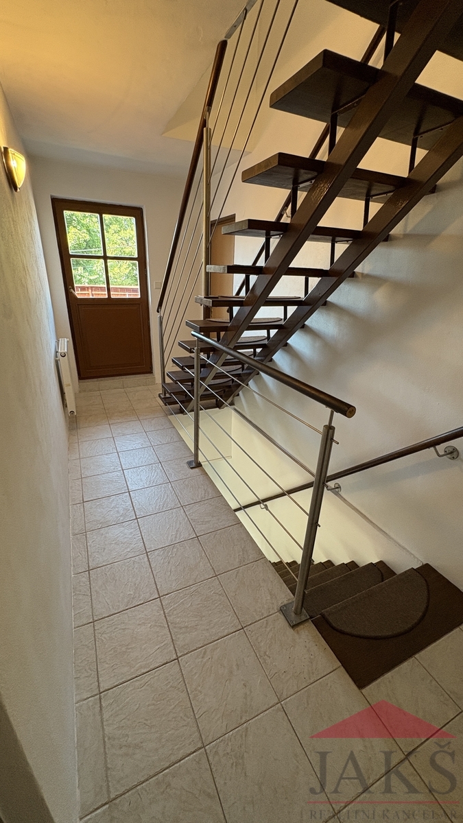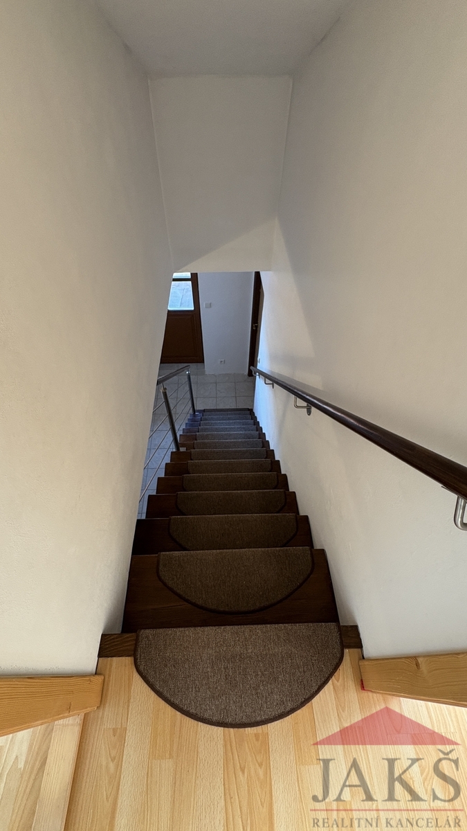 Popis: 1.NP (61,4 m2): vstupní chodba, dílna, kotelna (el. boiler a technologie k TČ), prostorný obývací pokoj se schodištěm do 2.NP, kuchyň (kuch. linka s HV troubou se sklo-ker. deskou) se vstupem na zahradu, koupelna s podl. topením (rohová vana, umyv. se zrcad., WC, topný žebřík); 2.NP (38,2 m2): chodba se schodištěm do podkroví a vstupem na velkou terasu, koupelna (umyv. se zrcadlem, topný žebřík, WC), ložnice s balkonem, ložnice; podkroví: 2x půdní prostor (bez světlé výšky, avšak jako dětský pokoj pro malé děti ideální).