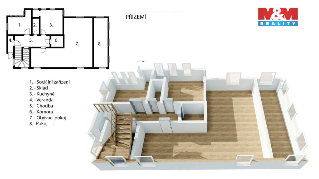 Nabízíme velký, zděný dům v perfektním stavu. Během let prošel rozsáhlou rekonstrukcí, střešní krytina je vyměněná, dům je z velké části podsklepený, odizolovaný, s novými rozvody elektřiny, vody i odpadů. Dřevěné je pouze obložení, nikoliv stavba. K dispozici je v každém patře velká koupelna. Přízemí domu vás ohromí rozlehlou halou s velkými kachlovými kamny, dále prostornou kuchyní, jedním velkým pokojem a několika menšími komorami. V patře najdete kromě koupelny pět dalších pokojů propojených centrální chodbou. Sklepní prostory čítají mimo jiné garáž s elektrickými vraty a technickou místnost s plynovým kotlem. Pochozí podkroví je možné využít k dostavbě dalších pokojů. Pozemek 541 m² je vlastní, dále je možnost využívat pozemek obecní, který je ze všech stran. V bezpečné vzdálenosti protéká potok. Celý dům je suchý, udržovaný a v dobrém stavu s možností okamžitého využívání. Rádi Vás zde přivítáme!