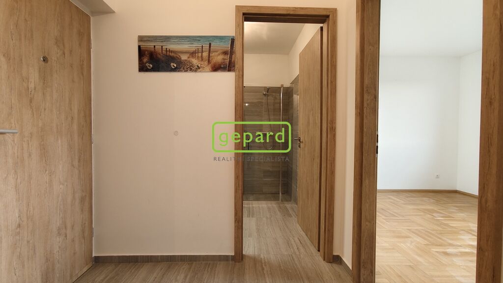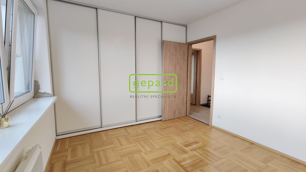 Byt o ploše cca 52 m2 je umístěn v 1.patře s výhledem do zahrady. Je tvořen předsíní,koupelnou s WC a sprchou, ložnicí a obývacím pokojem s kuchyňským koutem. Pokoj je propojený velkými prosklenými dveřmi se zasklenou verandou, která může sloužit třeba jako pracovna. Byt je vybaven kuchyňskou linkou se spotřebiči ( lednice s mrazákem, sklokeramická deska, elektrická trouba, digestoř, myčka, pračka), v ložnici je velká vestavěná šatní skříň. Ohřev vody elektrickým boilerem, vytápění elektrickým infrapanely. Byt bude připravený k nastěhování od 1.11.2025. Ideální pro pár.