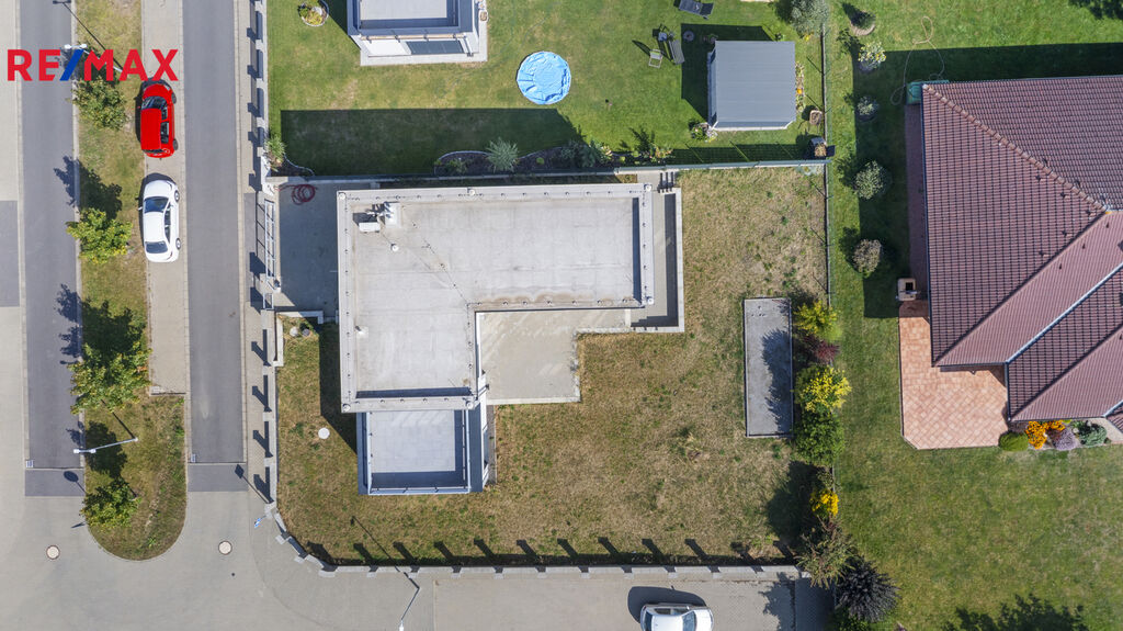 Moderní rodinný dům ve tvaru L je stavěn dle nejnovějších trendů s důrazem na kvalitní architektonické zpracování a provedení - podlahové vytápění, klimatizace, velkoformátová okna s izolačními trojskly, …