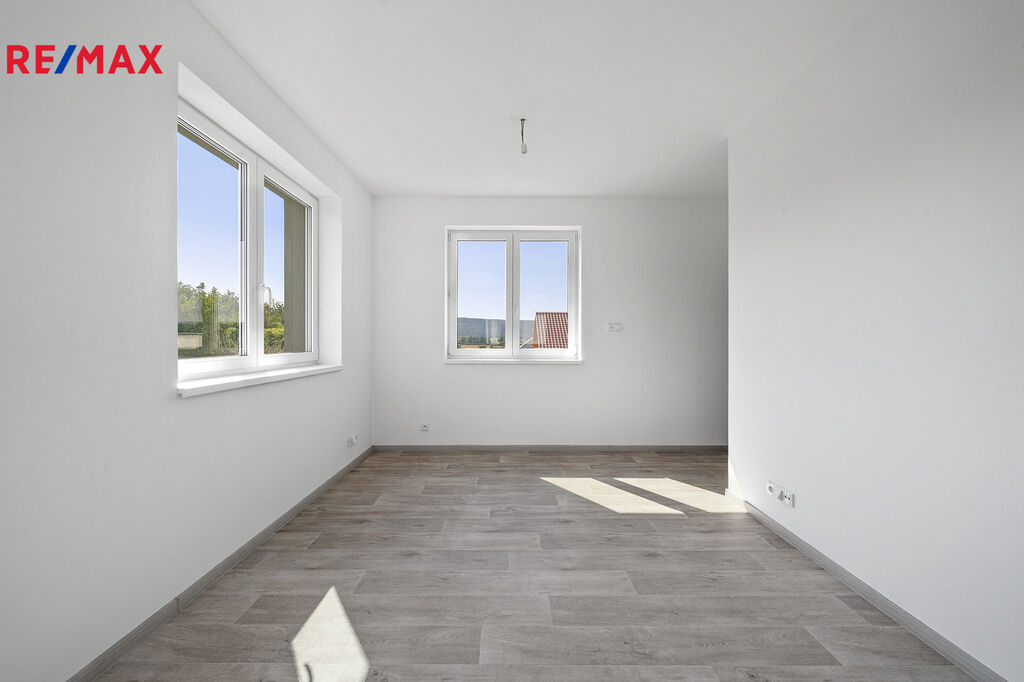 Dvoupodlažní dům s podlahovou plochou 198 m² přinese novým majitelům opravdu velkorysý prostor. Současná dispozice 6+kk nabízí moderně řešený obývací pokoj s kuchyní a jídelnou, 2 koupelny, 2 ložnice, 2 pokoje, pracovnu, šatnu, spíž, technickou místnost, sklad a 2 samostatné toalety. Z ložnice v druhém podlaží je poté přístup na 27,5 m² velikou terasu, na které můžete příjemně relaxovat a užívat si výhledy při západu slunce.