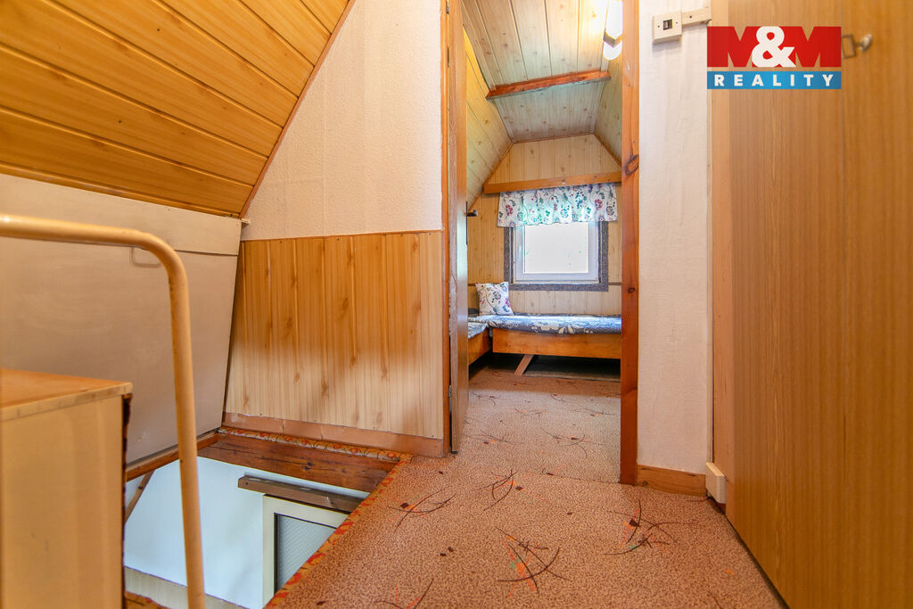 Prodej krásné chaty v Bukovci u Horšovského Týna v chatové osadě nedaleko rybníka Korida. Jedná se o dvoupodlažní dřevěnou chatu postavenou na zděném základu, ve kterém se nachází sklep a dílna. Podlahová plocha chaty je krásných 55 m². V 1NP se nachází vstupní chodba, obývací pokoj, kuchyňský kout, koupelna s WC a velká terasa, v 2NP jsou pak dvě ložnice. Pozemek okolo chaty představuje krásných 413 m2 a disponuje množstvím stromů a keřů, které tak vytváří skvělé místo pro relax a odpočinek. Tento rozlehlý prostor je jako stvořený pro zahradničení, relaxaci nebo drobné hospodaření. Do chaty je přivedena elektřina a voda s vlastního vrtu. Vytápění zajišťují krbová kamna a ohřev vody je řešen průtokovým ohřívačem. Odpady jsou svedeny do septiku. Chata má nová plastová okna a je velmi udržovaná. Máte rádi klid a chcete být obklopeni přírodou? Pak nás neváhejte kontaktovat a domluvit si prohlídku.