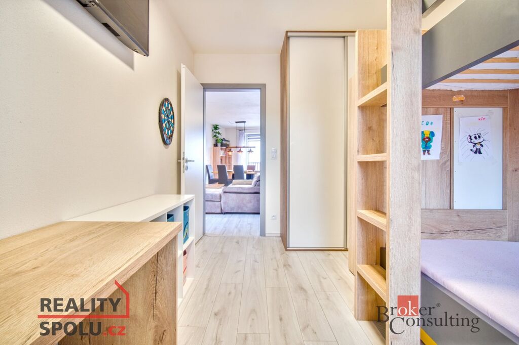 - dispozice bytu byla upravena z původního 3+kk na praktické 4+kk – kromě prostorného obývacího pokoje s kuchyňským koutem zde najdete ložnici, pokoj a třetí samostatný pokoj, který byl přistavěn a lze využít jako pracovnu, dětský pokoj, technickou místnost nebo sklad.