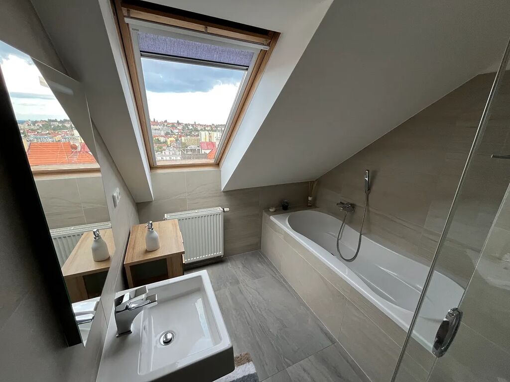 Výhodou je skvělá dopravní dostupnost do centra města i na letiště, v okolí se nachází kompletní občanská vybavenost – obchody, restaurace, školy, školky, parky a sportovní vyžití. 5 minut pěšky od domu park Ladronka . Zastávka MHD 300 metru od bytu. Za 15 minut pěšky dojdete na Pražský hrad.