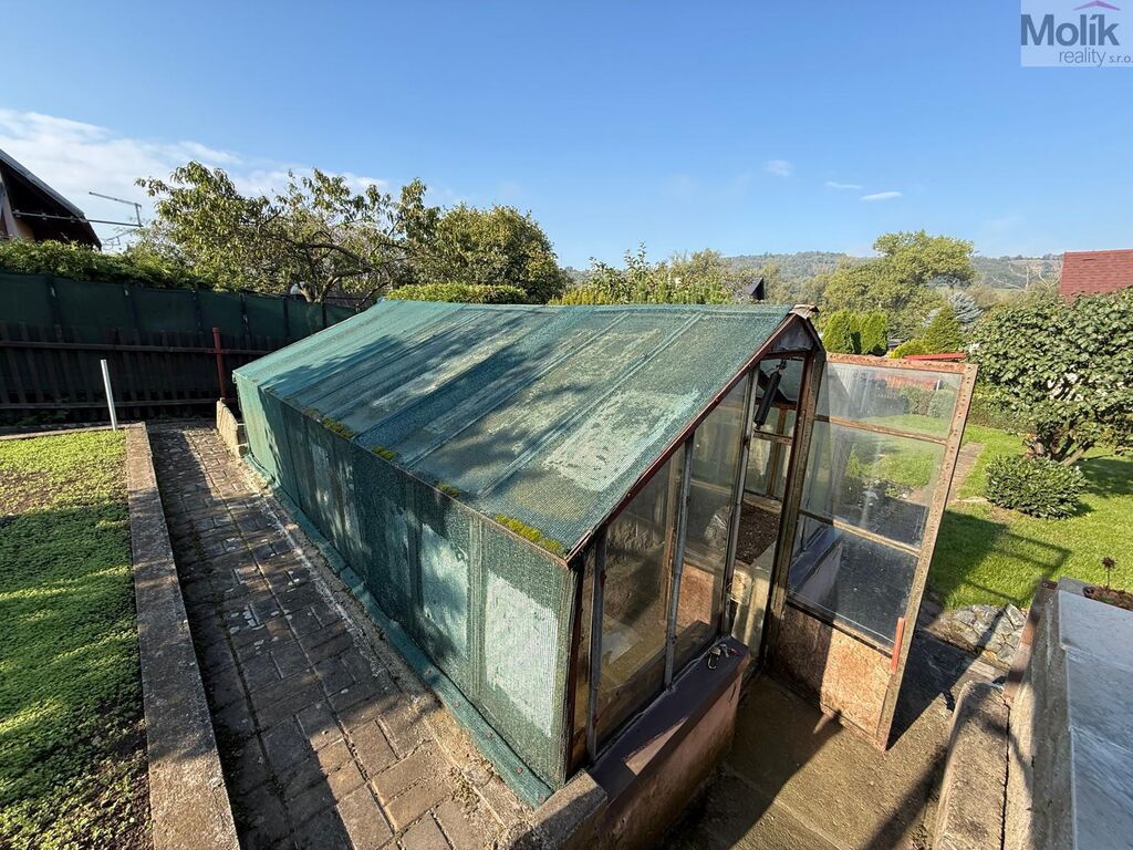 V patře je zřízené místo na spaní. Na pozemku je k dispozici také skleník.