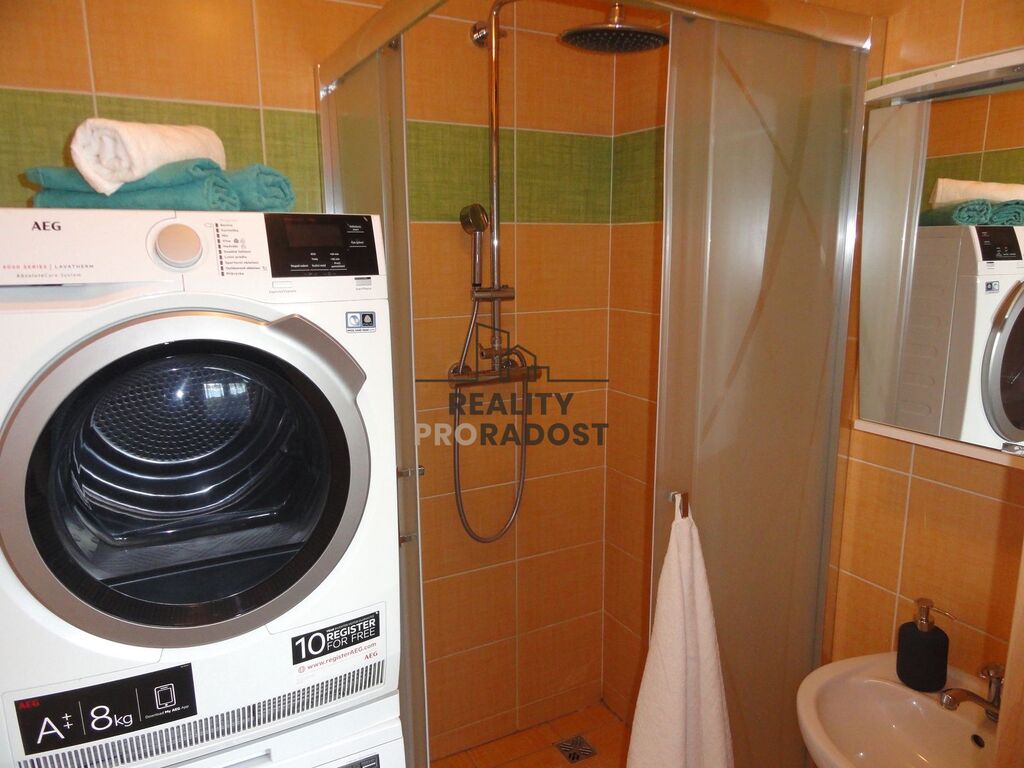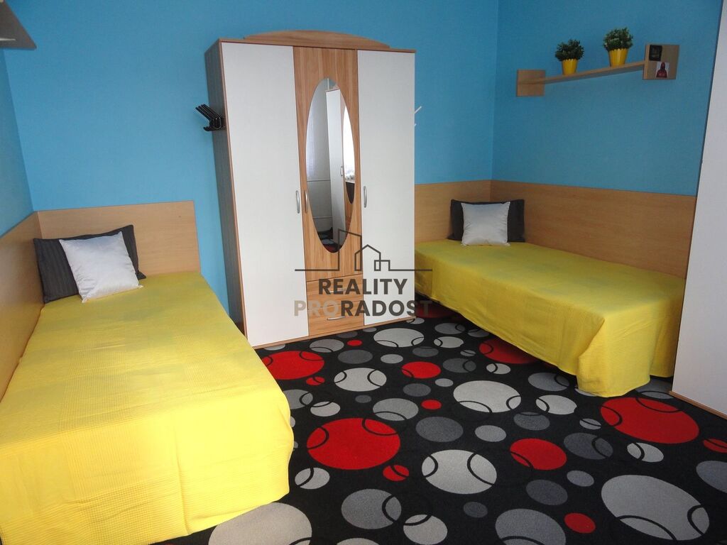 Dlouhodobý pronájem bytu 3+1 se zaskleným balkonem o CP 72 m2 v Olomouci, ul. V Křovinách. Moderně zařízený byt se nachází v 1. podlaží/8 zrevitalizovaného domu s kolárnou. Výhodou zdařile zrekonstruovaného bytu je možnost mít všechny pokoje neprůchozí - viz půdorys. Útulný byt s novou kuchyňskou linkou má k dispozici lednici, mrazák, myčku, mikrovlnku, pračku a sušičku. Nadstandardní vybavení bytu jsou 2 televize, klimatizace, venkovní elektrická roleta v ložnici a nové bezpečnostní dveře. (V dětském pokoji aktuálně nejsou 2 postele.)