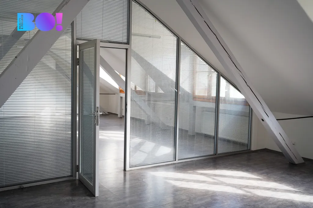 Vhodné pro firmu hledající příjemné podkrovní kanceláře na Smíchově s možností parkování a nepřetržitým přístupem.