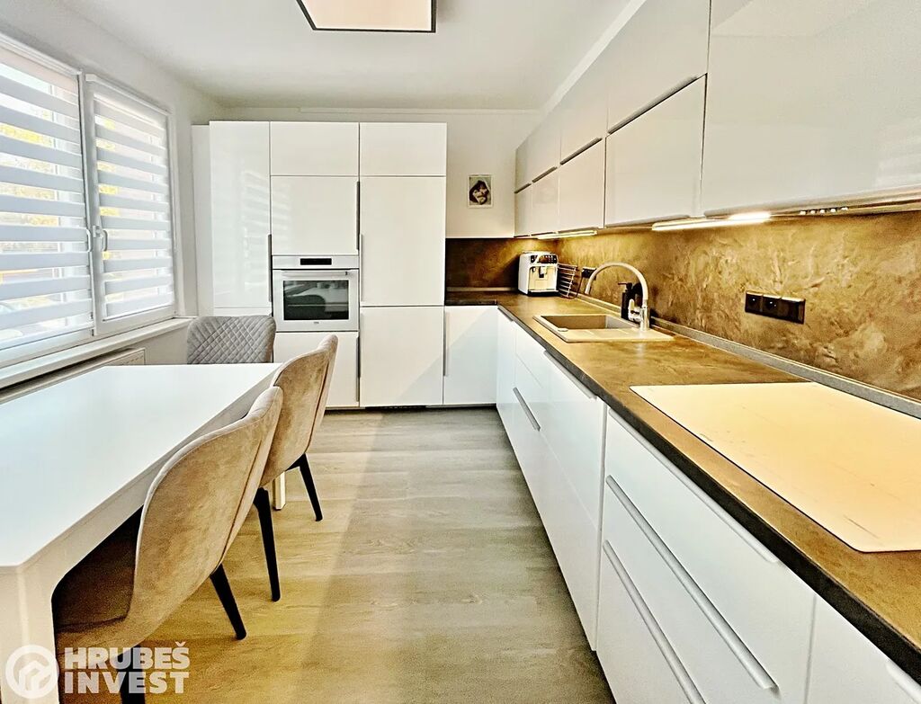 Pokud hledáte byt, do kterého se nastěhujete a už nebudete muset nic řešit, než jak si budete užívat života, pak se pojďte s námi podívat na jeden krásně zmodernizovaný byt s dispozicí 3+1 v Dobrušce. Je zde kompletní občanská vybavenost, kousek od domu je obchodní dům Lidl a Penny, je to kousek do centra Dobrušky. Hned před domem máte krásné dětské hřiště, úplně mimo hlavní silnici, zde si mohou Vaše ratolesti v klidu hrát a vy je můžete kontrolovat z okna bytu. Byt má výměru 81,3 m2 (+ balkon) a je umístěn ve 2NP (1. patře) panelového bytového domu s výtahem. V roce 2022 byla provedena kompletní modernizaci (elektroinstalace v mědi v celém bytě, zděné jádro, kuchyně na míru, podlahy lepený vinil, nové dveře i obložky, …). Byt má vstupní chodbu, ze které je vstup do šatny, samostatné toalety, koupelny se sprchovým koutem, pračkou a sušičkou, do ložnice, dětského pokoje s balkónem, do obývacího pokoje, ze kterého je vstup do kuchyně s jídelnou.