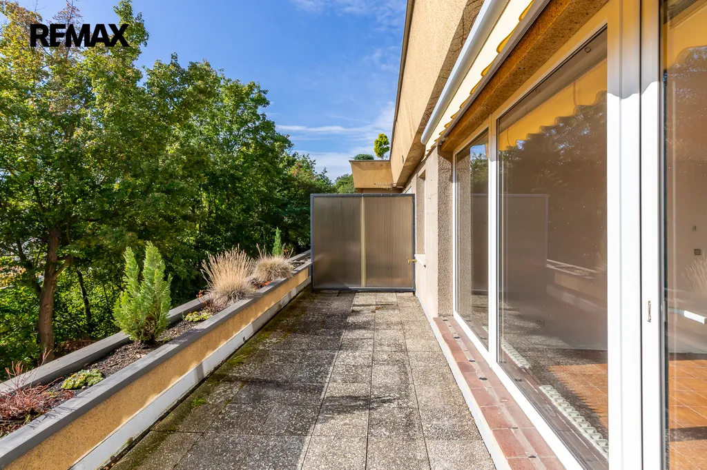 Byt o dispozici 4+1, 95m² v ulici Pod Skalkou kombinuje výhledy do zeleně s velkou terasou 20m² orientovanou na jih a vynikající dopravní dostupností.