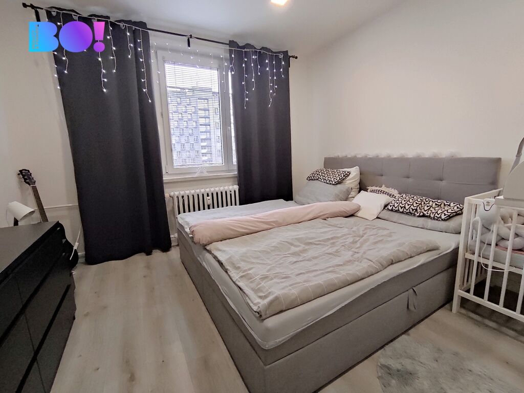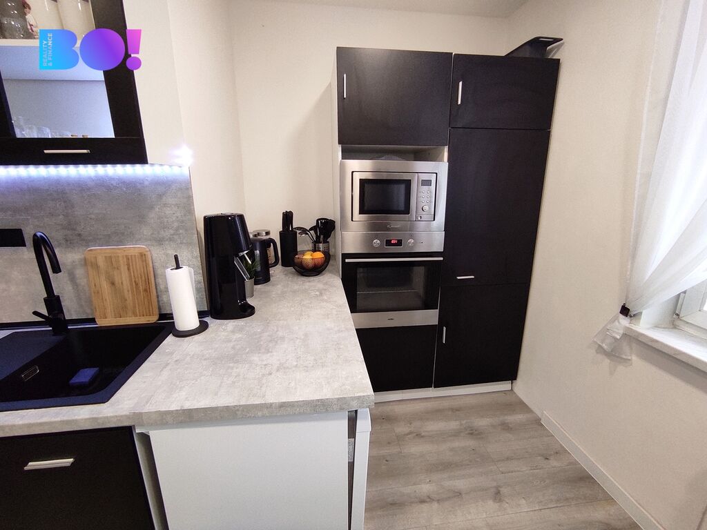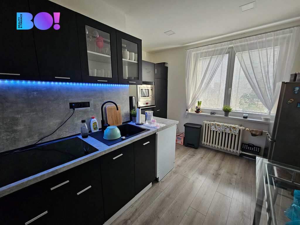 Nabízíme kompletně zrekonstruovaný byt v podobě nových omítek, plovoucí podlahy a interiérové dveře v celém bytě + nové vchodové bezpečnostní. Byt má dva neprůchozí pokoje. Interiér bytu je laděný do moderních tónů. Byt je částečně vybaven vestavěnou skříní v předsíni, kuchyňská linka vybavena troubou, myčkou a po domluvě i lednice a skřínka v koupelně. K bytu také náleží sklepní koje, v obývacím pokoji najdete místo i pro menší pracovnu. Nastěhování je možné ihned.