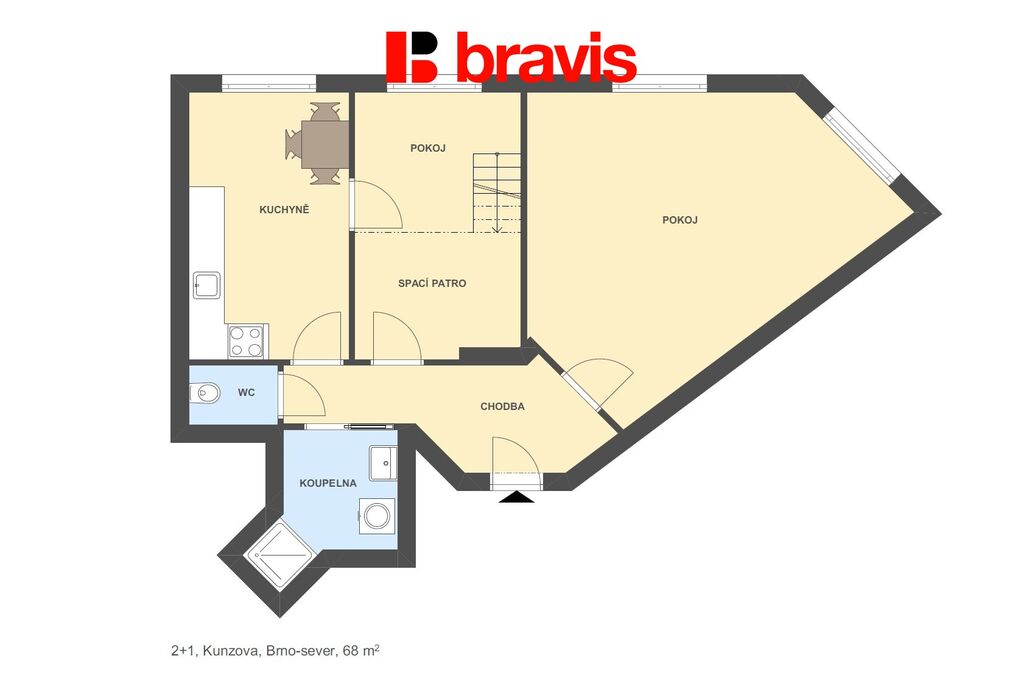 Pronájem bytu 2+1, Brno, Kunzova, 68 m2