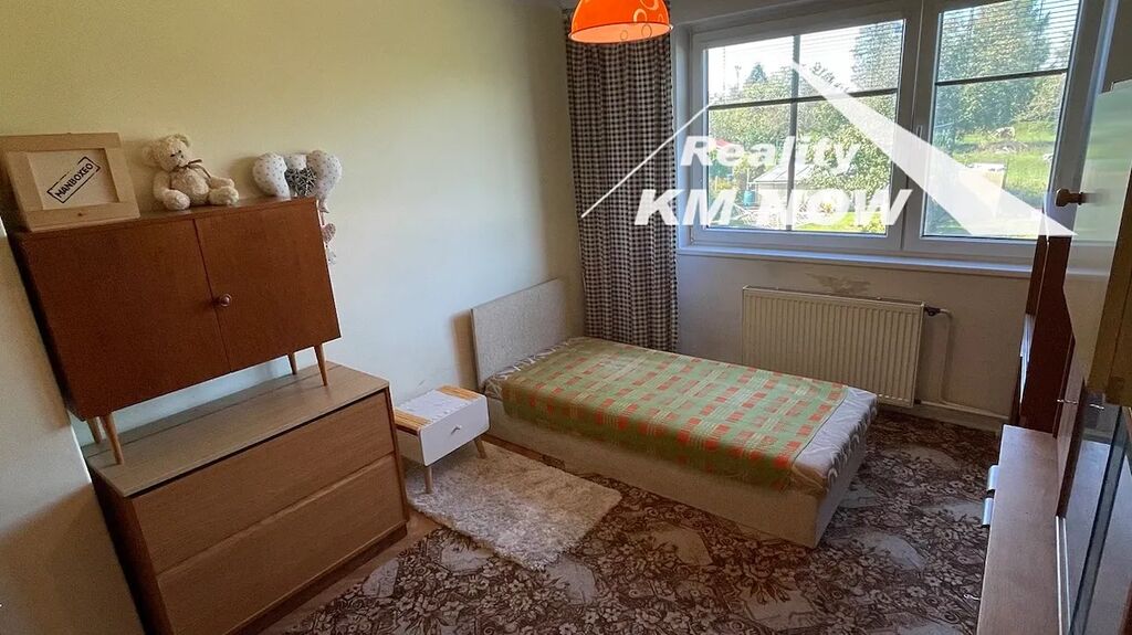- v patře domu je prostorný obývací pokoj, další dva pokoje, kuchyně, koupelna s vanou a samostatné WC. Z obývacího pokoje a ložnice je přímý vstup na prostorný balkón (9 m2), který je situován na jih a skýtá výhled na centrum města.