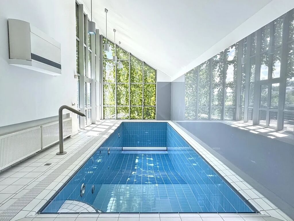 Třetí podlaží tvoří klidová zóna – 3 ložnice, 2 koupelny a šatna. Z tohoto podlaží je přístup na soukromou terasu s možností slunění i vstupu do krytého bazénu (8,5 x 2,7 x 1,7) s protiproudem, který je umístěn v samostatné budově. Bazén je propojen s hlavní částí domu zastřešenou chodbou, takže jej lze komfortně využívat po celý rok. Pokud se nechcete opalovat na terase, můžete vystoupit do zahrady obklopené vzrostlými stromy, kde na vás neuvidí sousedé ani kolemjdoucí. Máte rádi společenské akce a rádi vítáte hosty u sebe doma? Tato nemovitost nabízí naprosté soukromí a zázemí pro společenské události.