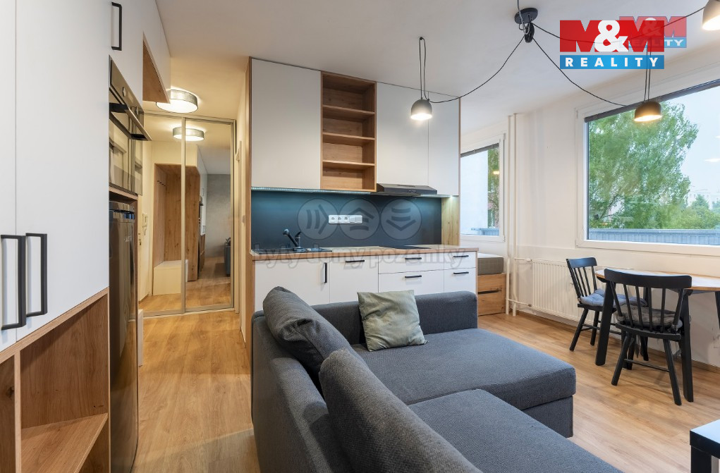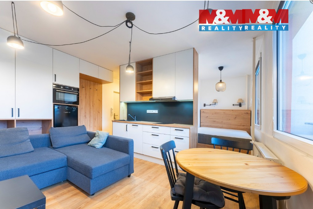 Dispozice bytu je promyšlená do posledního detailu, obývací část s kuchyňským koutem nabízí dostatek prostoru pro odpočinek i práci z domova a oddělenou částí na spaní. Kuchyň je plně vybavena spotřebiči, byt je zařízený nábytkem, takže stačí jen vzít osobní věci a bydlet. Velkým bonusem je prostorná lodžie 7 m2, ideální pro ranní kávu nebo večerní posezení. K bytu náleží také samostatná komora na chodbě.