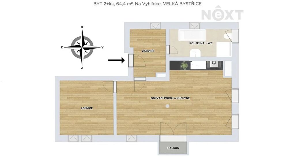 Světlem zalitý byt s okny do tří světových stran, prostorným obývacím pokojem propojeným s moderní kuchyní a balkonem s panoramatickým výhledem. To vše ve Velké Bystřici – místě, kde získáte víc než jen komfortní bydlení.