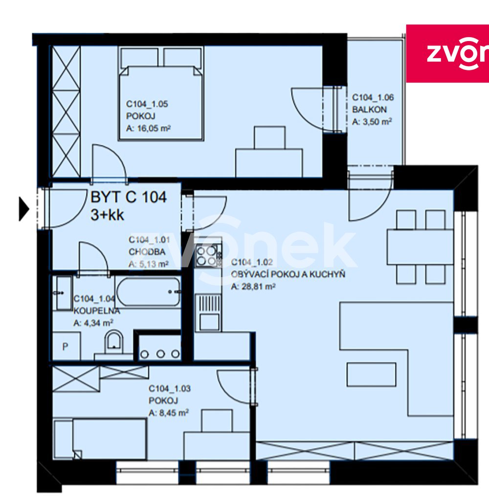 Pronájem bytu 3+kk, Zlín, 70 m2 (ID: 1960896)
