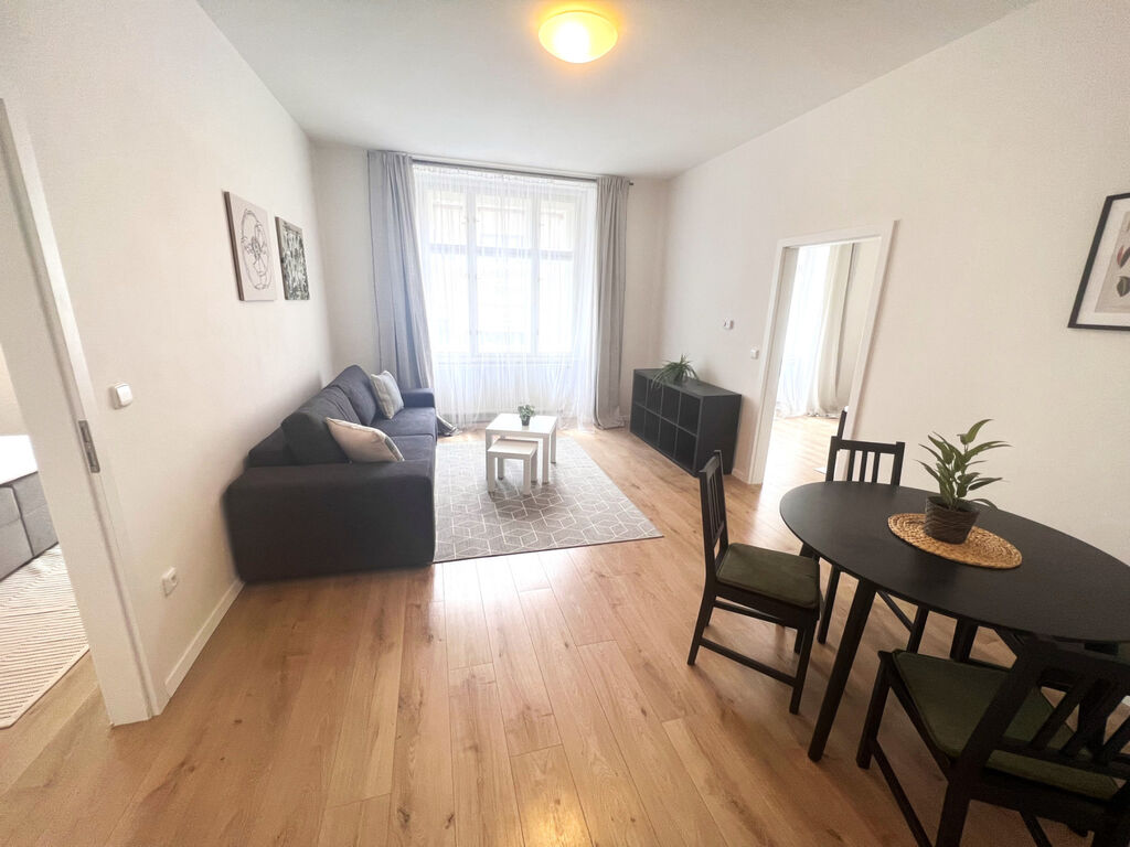 Pronájem zařízeného bytu po rozsáhle rekonstrukci bytu na Praza 10 – Vršovice, v blízkosti Heroldových a Havlíčkovych sadů. Nabízený byt je umístěný ve zvýšeném přízemí (1.NP) čtyřpatrového činžovního domu. Dispozičně je řešený jako 3+kk (78,46m2) a obsahuje obývací pokoj, dvě ložnice, koupelnu s vanou umyvadlem a pračkou přístupnou z jedné z ložnic, kuchyňku s kuchyňskou linkou (myčka, el. trouba, plynová varná deska, lednice s mrazákem), samostatná toaleta, komora a předsíň. K dispozici také sklep (3,41m2). V místě je veškerá občanská vybavenost a perfektní dopravní spojení. Můžu jenom doporučit.