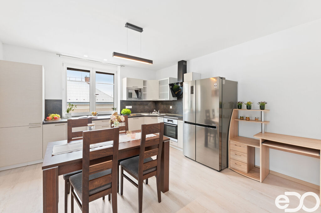 Nabízím ke koupi útulný podkrovní byt 3+kk o velikosti 55 m² s balkonem, po kompletní a promyšlené rekonstrukci z roku 2020, která byla navržena s důrazem na dostatek úložného prostoru. Byt se nachází ve 3. nadzemním podlaží menšího bytového domu v klidné části Smiřic.