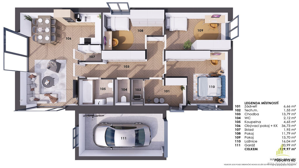 Dům o dispozici 4kk s garáží a zahradou s celkovou užitnou plochou 130 m² bude vystavěn na pozemku o výměře 689m².