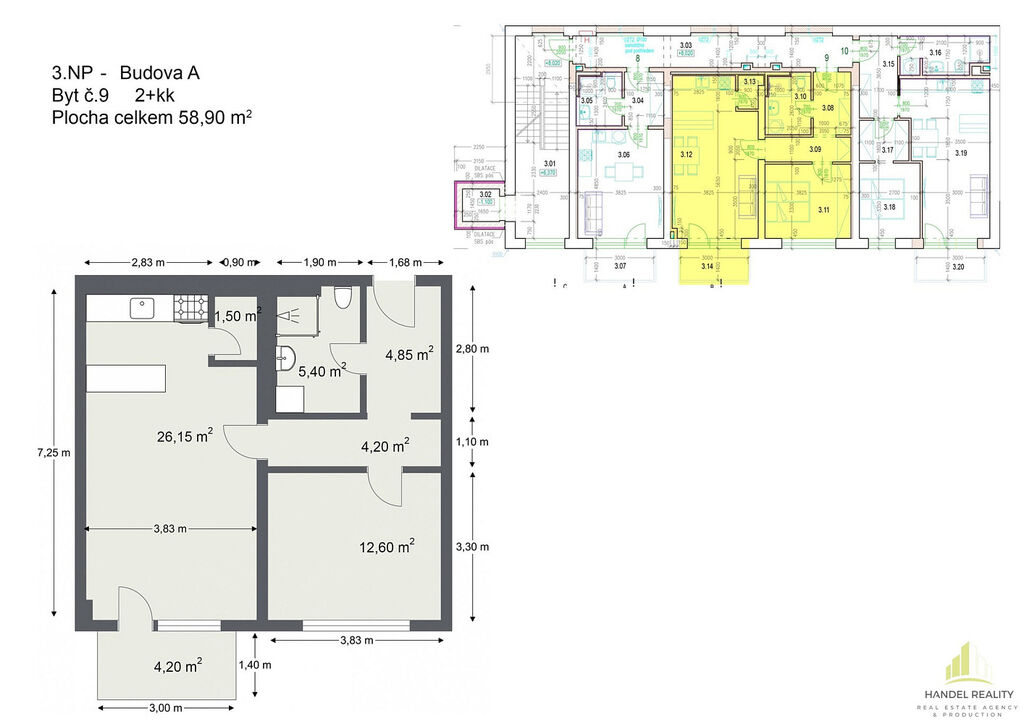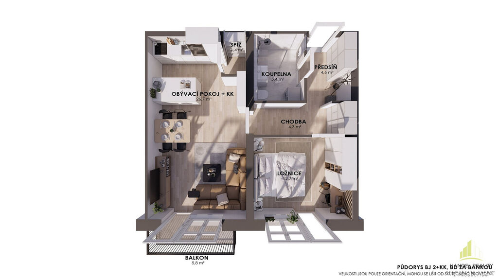 Nabízíme krásný byt 2+kk k prodeji v Břeclavi. S plochou 59,9 m² poskytuje dostatek prostoru pro pohodlné bydlení pro jednotlivce nebo pár. Byt se nachází v 3. NP a disponuje moderním a útulným interiérem, je také vybaven vlastní klimatizací, tím zajistí příjemné a komfortní prostředí po celý rok. Součástí jednotky je i terasa o velikosti 4,2 m². K bytu přináleží kóje s vlastní přípojkou elektřiny.