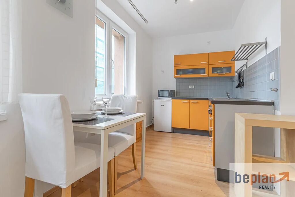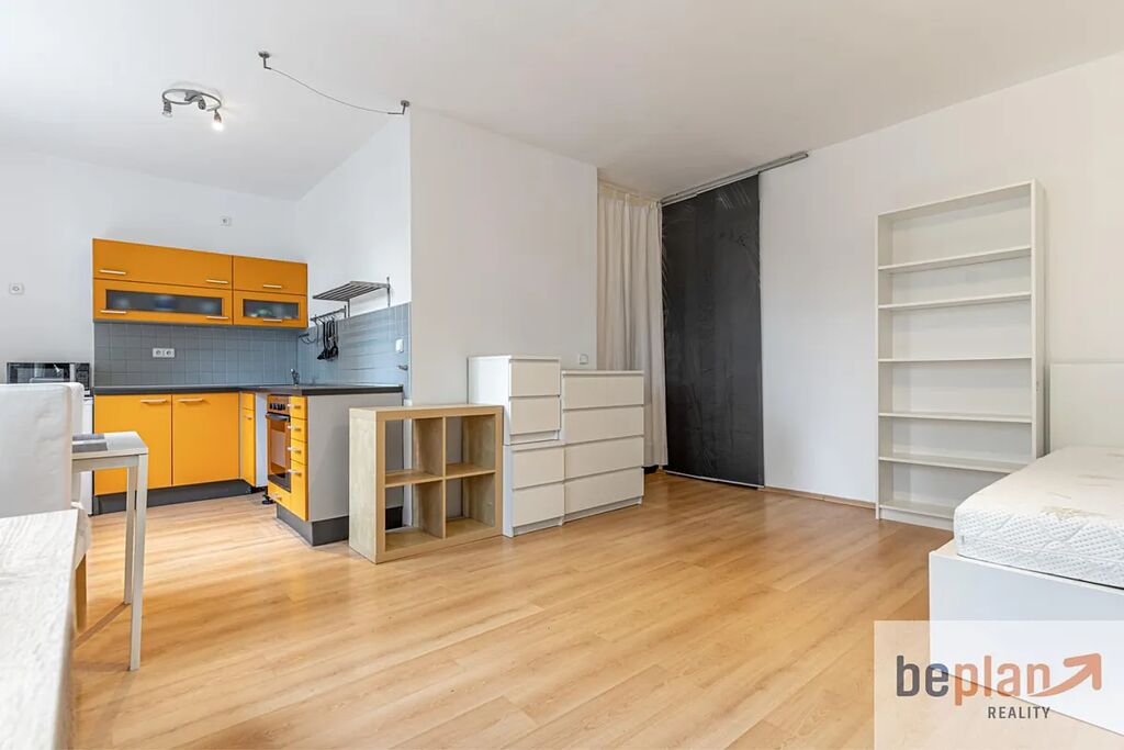 Pronájem částečně zařízeného bytu 1+Kk o velikosti 30 m2 ve 2 patře cihlového domu. Byt je světlý a částečně zařízen - postel, skříně, jídelní stůl se židlemi, pracovní stůl, a zajišťuje tak pohodlné nastěhování a také byt je prázdný a nabízí možnost rychlejšího stěhování. Čistě holý nájem je 14 400,- + 4000,- činní poplatky. Umístění domu nabízí skvělou dostupnost do centra Prahy, ale i také kam člověk potřebuje.