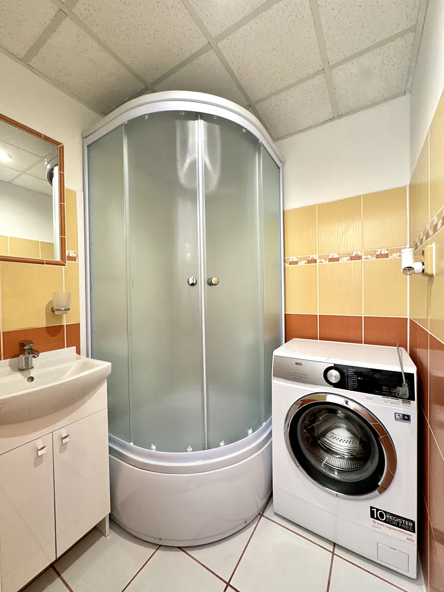Sestává se z chodby, ložnice, dětského pokoje, kuchyně s plynovým sporákem, obývacím pokoje. V původním bytovém jádru je koupelna s umyvadlem a sprchovým koutem, samostatné WC. K bytu náleží komora na chodbě a sklepní koje.