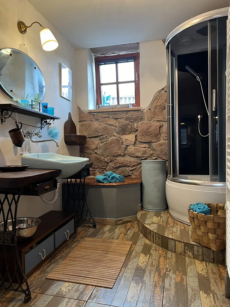 Patrový rodinný dům. Stavba z kamene. Původně stodola. Po náročné rekonstrukci v roce 2014 se změnila v rodinné sídlo plné pohody, světla, umně zabudovaných historických předmětů, s výhledy do okolní krajiny.