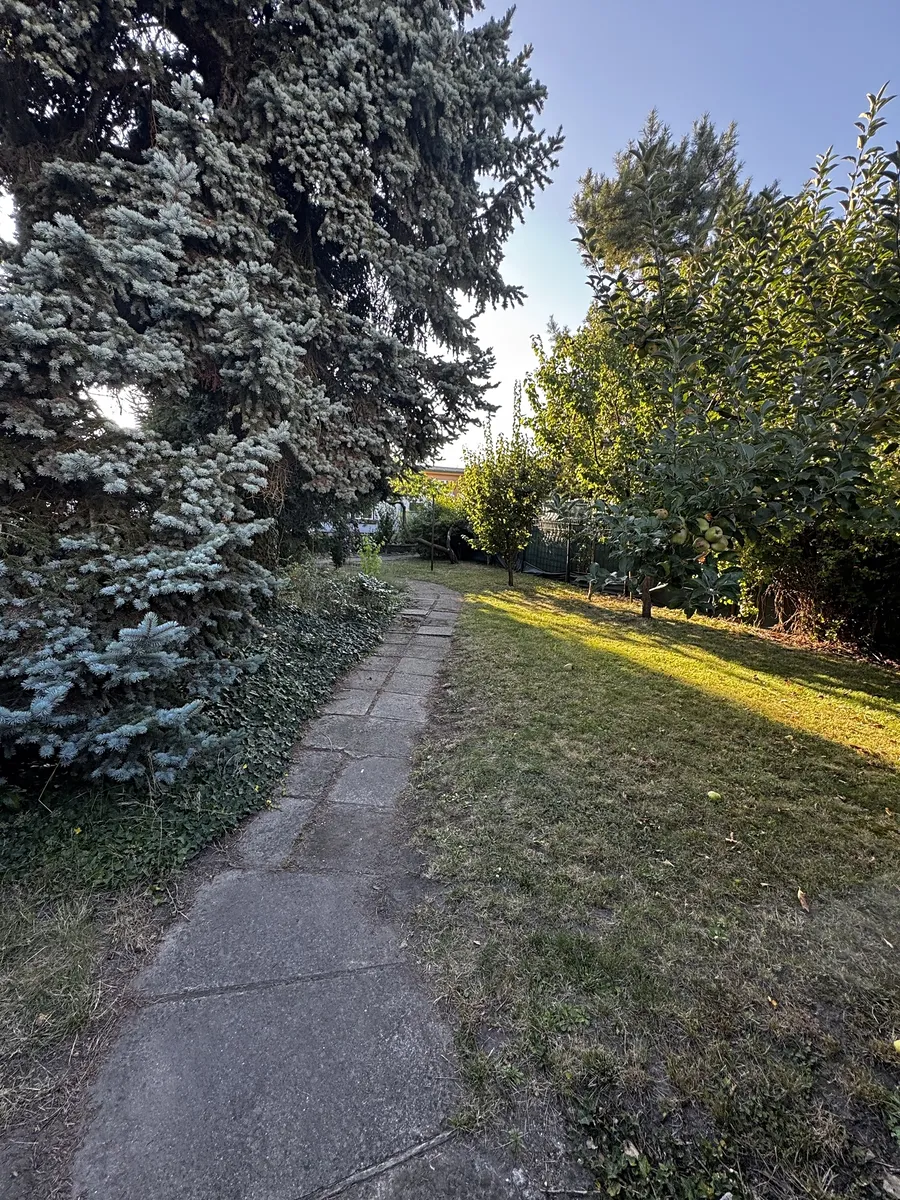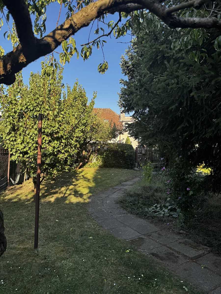 Celková plocha pozemku je 419 m2 z čehož je 51 m2 garáž s dílnou, samostatná zahrada je 272 m2 a dům je o výměře 96 m2. Nemovitost se nachází v klidné části starší zástavby a také v těsné blízkosti centra města. Tato okouzlující zahrada zaručí vzhledem ke vzrostlé zeleni spoustu soukromí a také několik zákoutí k posezení, protože dům samotný se nachází až v zadní části pozemku.