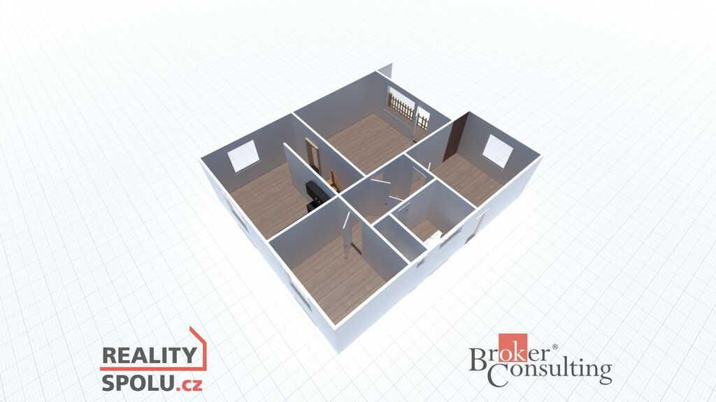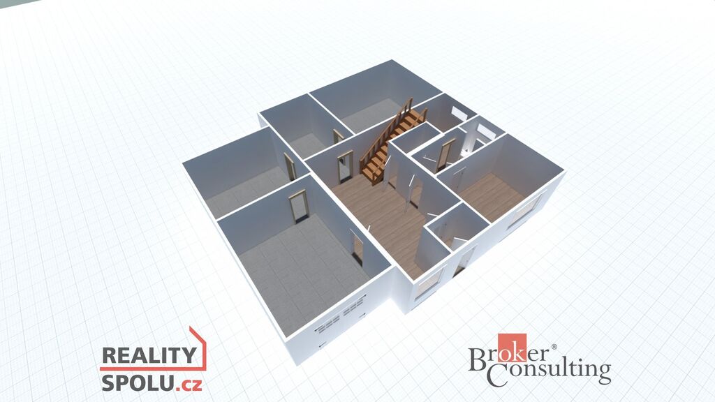 V inzerci jsou použity vizualizace budoucího stavu domu, které ilustrují možný vzhled po rekonstrukci.